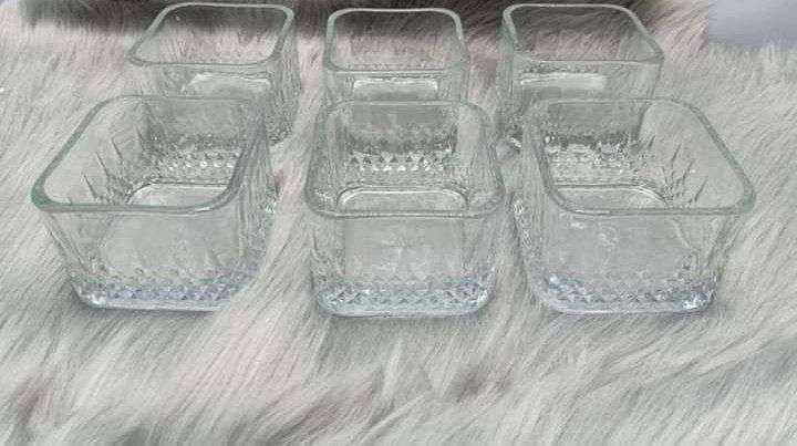 طقم بوله زجاج تيولين مربعه شيك جدا طقم 6 * 1 تحفه بجد ومفيش جمال بعد كده من الزجاج الصافي والنقي مميزه بشكلها المربع الجديد بنقشه روعه تنفع للمهلبيه والرز بلبن وطبقات البسكويت او الكنافه بالكر