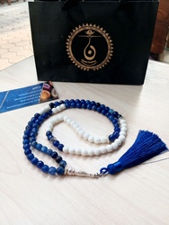 مسبحة من الفيروز مع حبات عقيق طبيعي وفواصل ومدنة وشرابة مطلية فضة