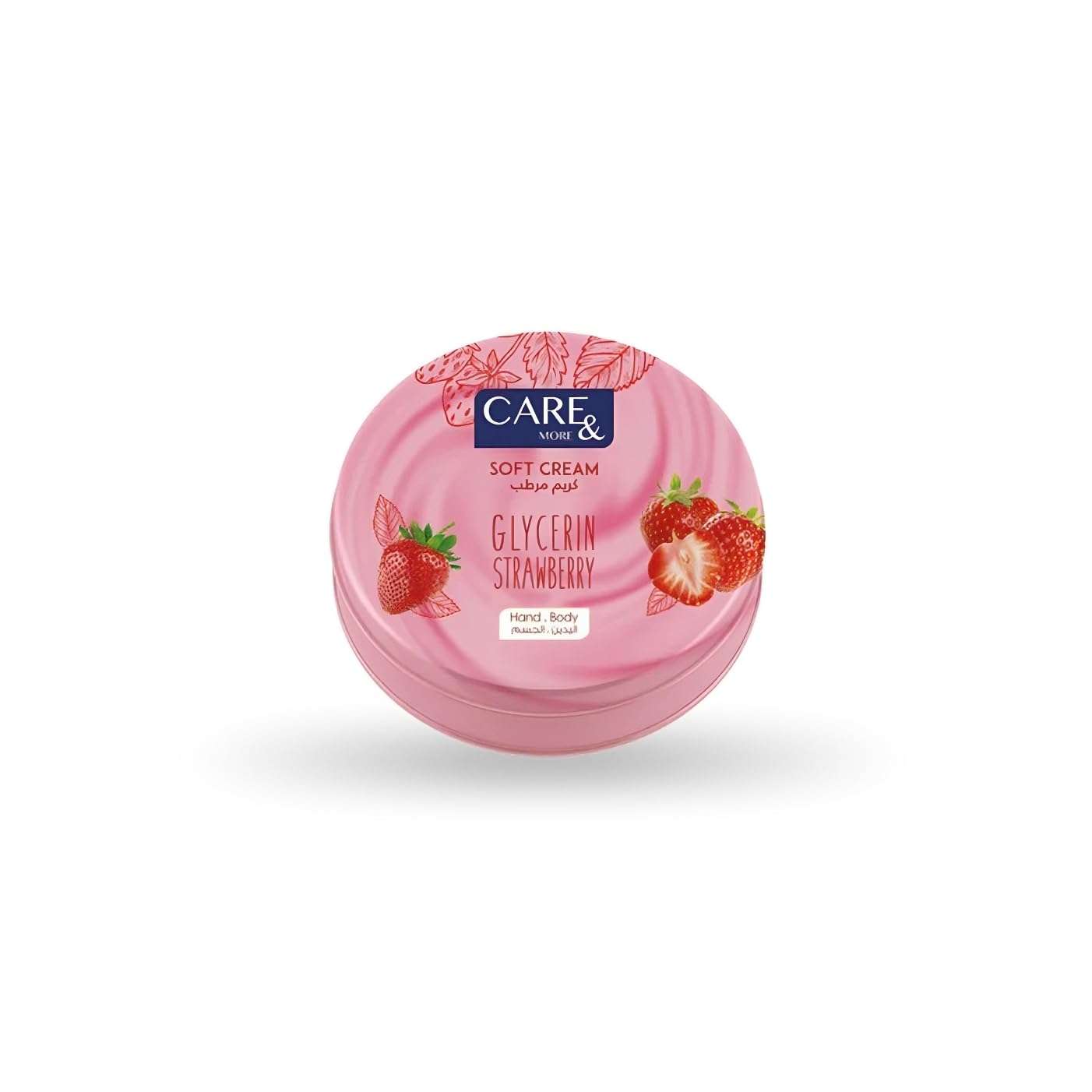 غذي بشرتك مع كريم كير آند مور بالفراولة الناعم 75 مل مع الجلسرين. فهو مصنوع من مكونات عالية الجودة، مما يتيح له الاستخدام طويل الأمد. يمكن تطبيقه على يديك ووجهك وجسمك، مما يؤدي إلى الحصول على بشرة ناع
