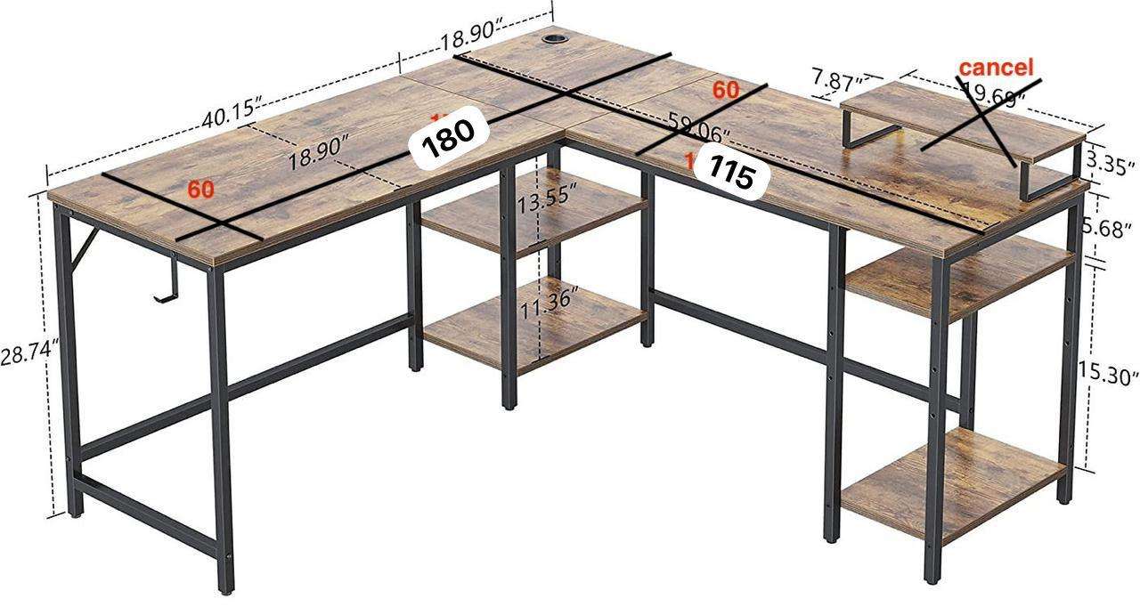 مكتب حرف ل من المعدن والخشب
