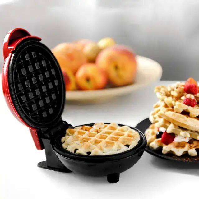 جهاز ميني وافل ميكر مدور 🔥🔥🔥🔥 اسهل طريقة لعمل الوافل هتكون معانا في الجهاز ده👌👌👌 تستخدم لصنع الوافل الألواح مطليه بطبقة غير لاصقة لسهولة الطبخ والتنظيف مزوده باضواء مؤشرة للتشغيل والجاهز