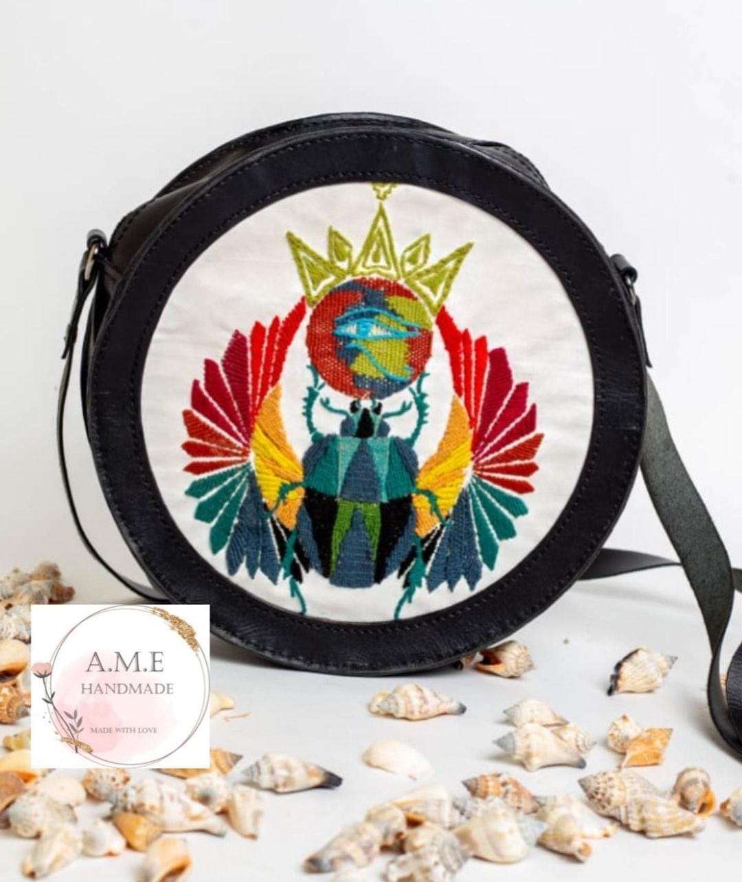 شنطة جلد طبيعى حريمي تطريز ألوان ثابتة وآمنة الأبعاد ٣٥ سم التنفيذ خلال ١٥ يوم السعر غير شامل التوصيل