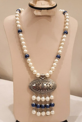 عقد جميل وشيك من اللولى الاوف وايت والأزرق ومزين بدلاية فضي جميلة١٨٠ج.م١,٨٠٥