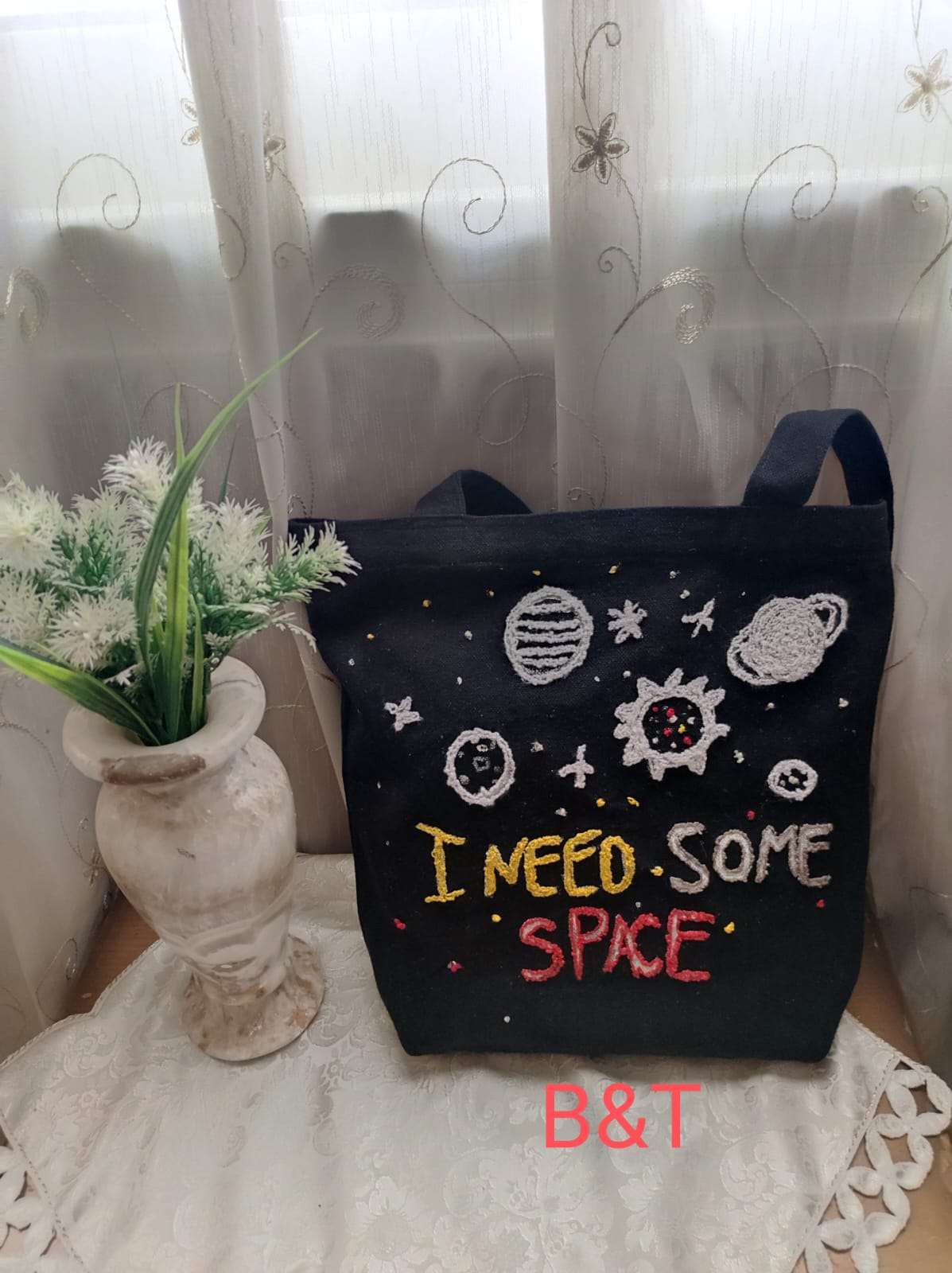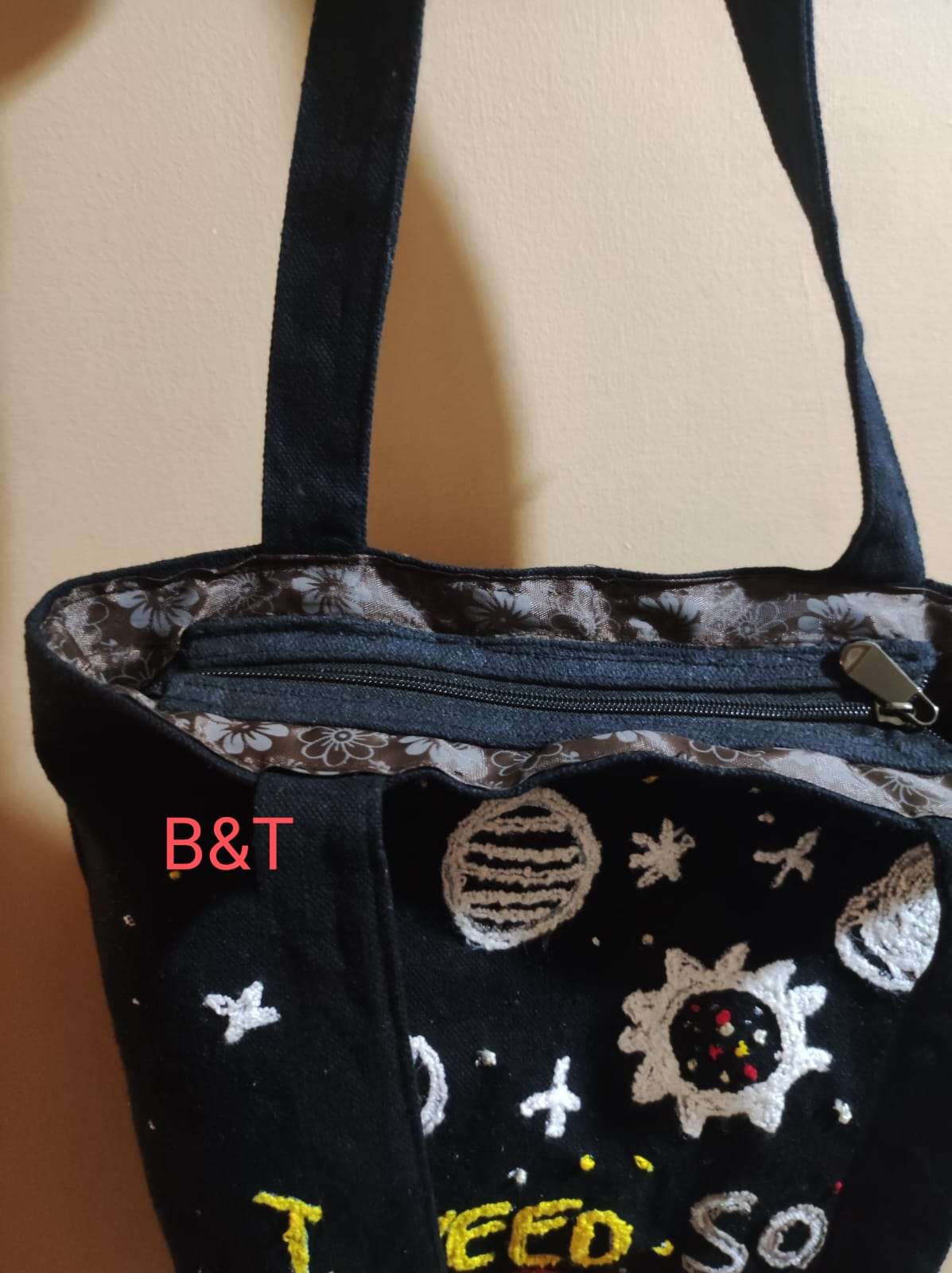 شنطه توت باك مطرز بفن البانش نيدل وإمكانية تطريز بذوق العميل