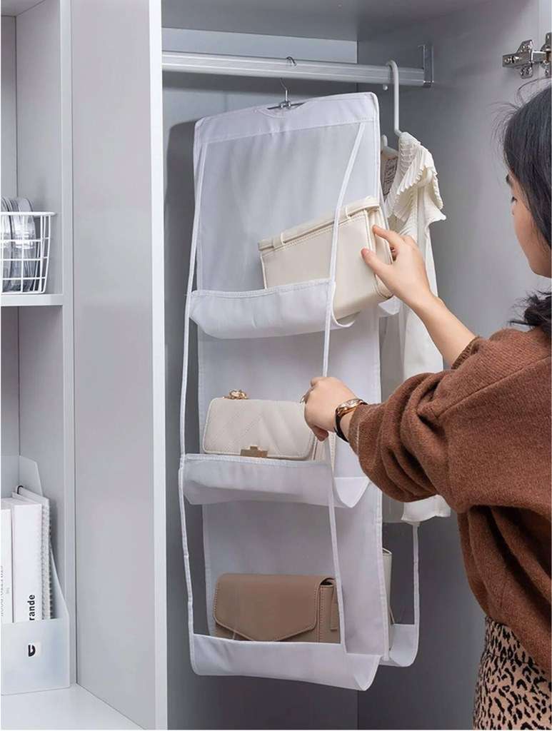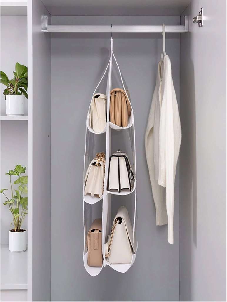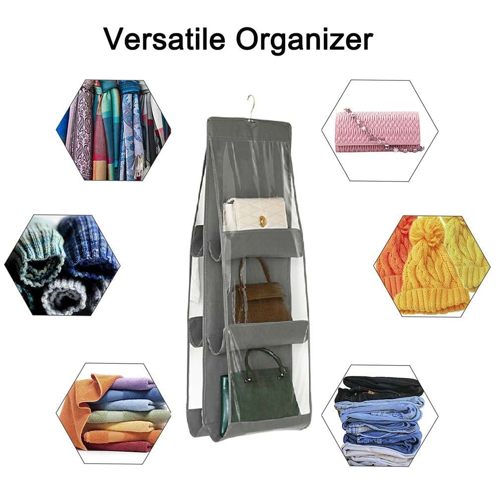 منظم شنط تحتوي على 6 جيوب ، حامل تخزين مقاومة للأتربة ، لتعليق وتخزين الحقائب داخل الدولاب أو غرفة الملابس، للتخزين و إستغلال أفضل للمساحة، لتخزين حقائب اليد والأحذية والمحافظ وغيرها كتير قابلة لل