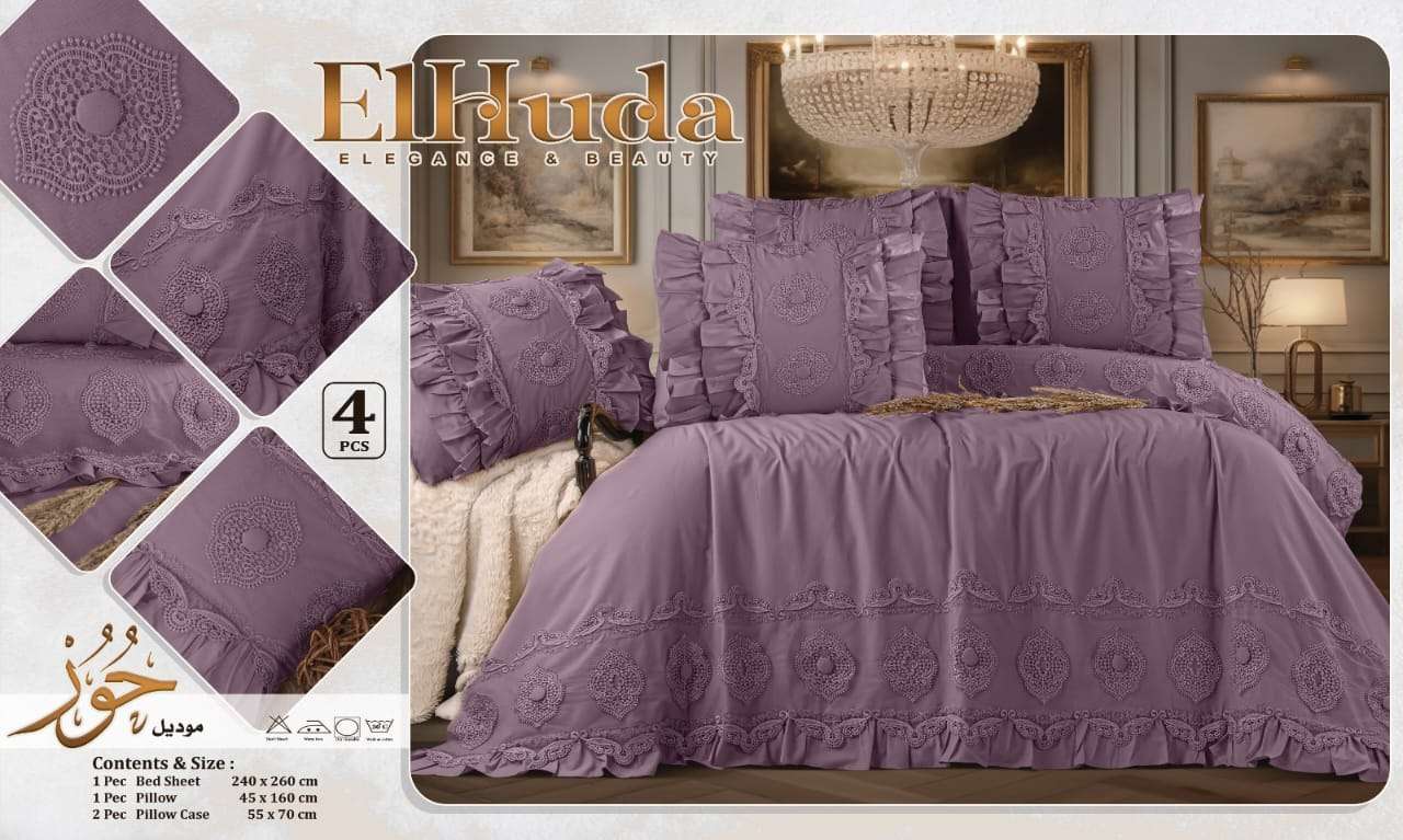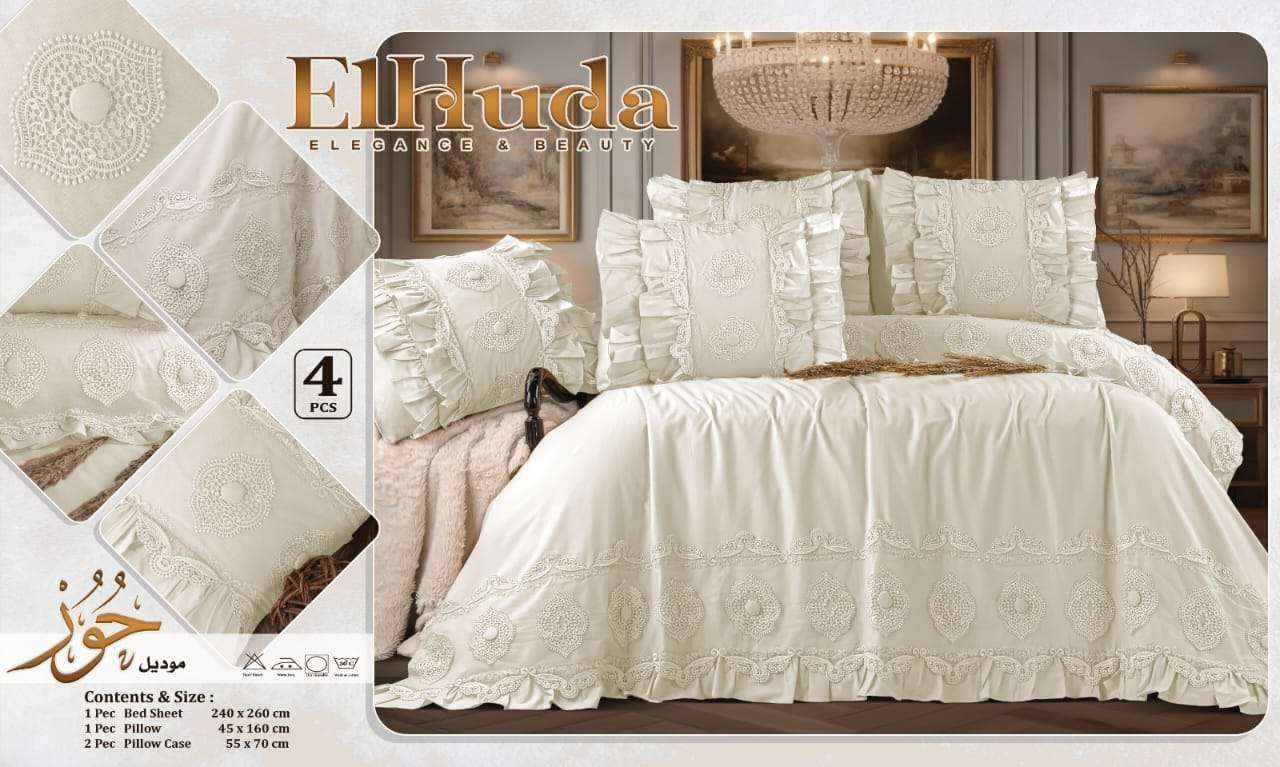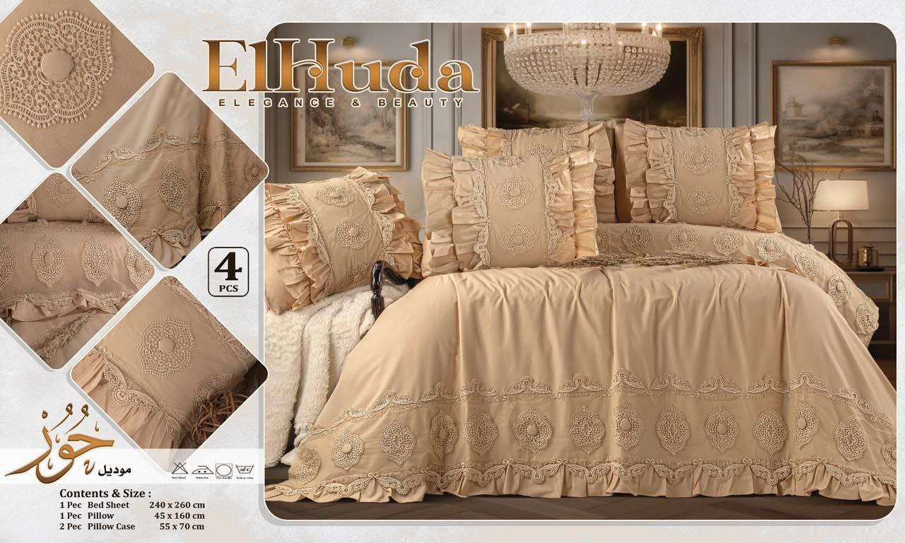 🌼 طقم سرير قطن بيور بجوبير حور الهدى قطن صافي 💯✖️💯 4 قطع كبير ملاية 240x260 مخدة 45x160 2 خدادية 70x55 السعر 1095 ج