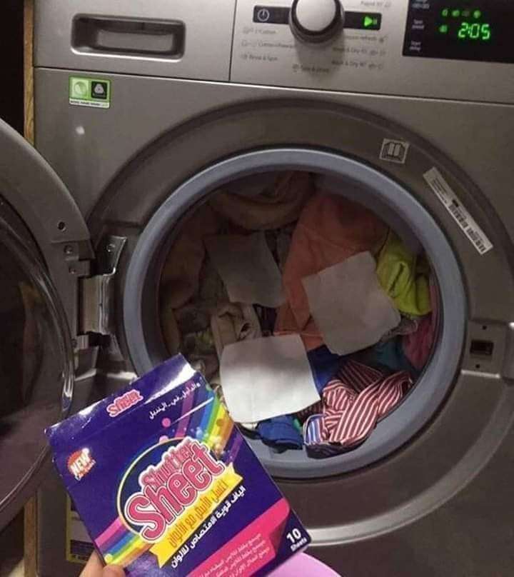 شاتر شيت( مناديل مانعه البهتان) لسه محتاره هتحطى التيشرت اللى فيه لونين مع الفواتح ولا الغوامق و لو هتغسليه لوحده ممكن يبهت على نفسه 🤷♀ دلوقتي مع شاتر شيت تقدري تغسلي الملابس كلها غوامق و فوا