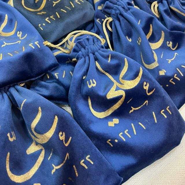 كيس قطيفه مع سبحه كريستال وسوره الكهف أو يس أو البقره قطيفه بيكون مطبوع عليهم اسم البيبي والتاريخ