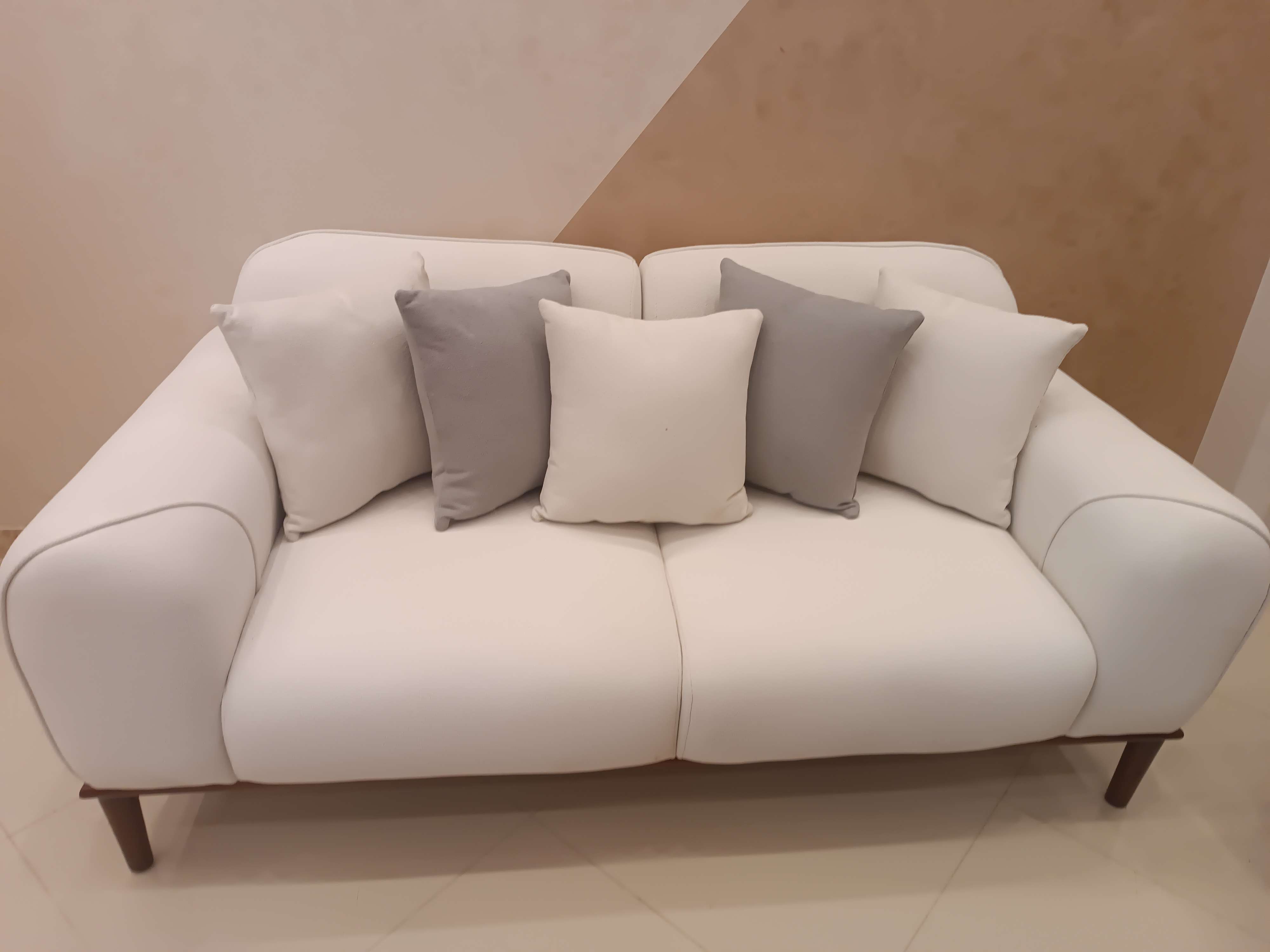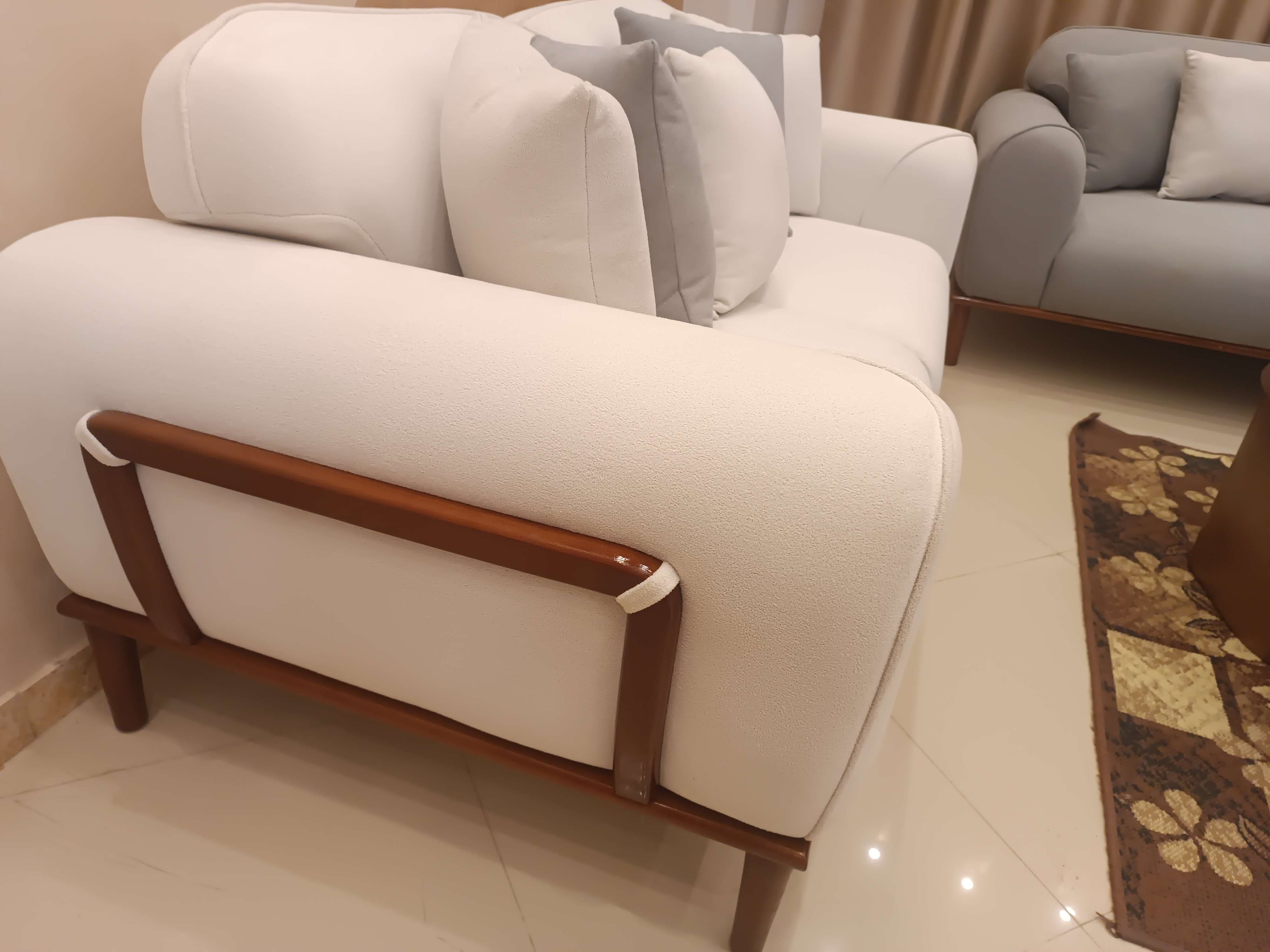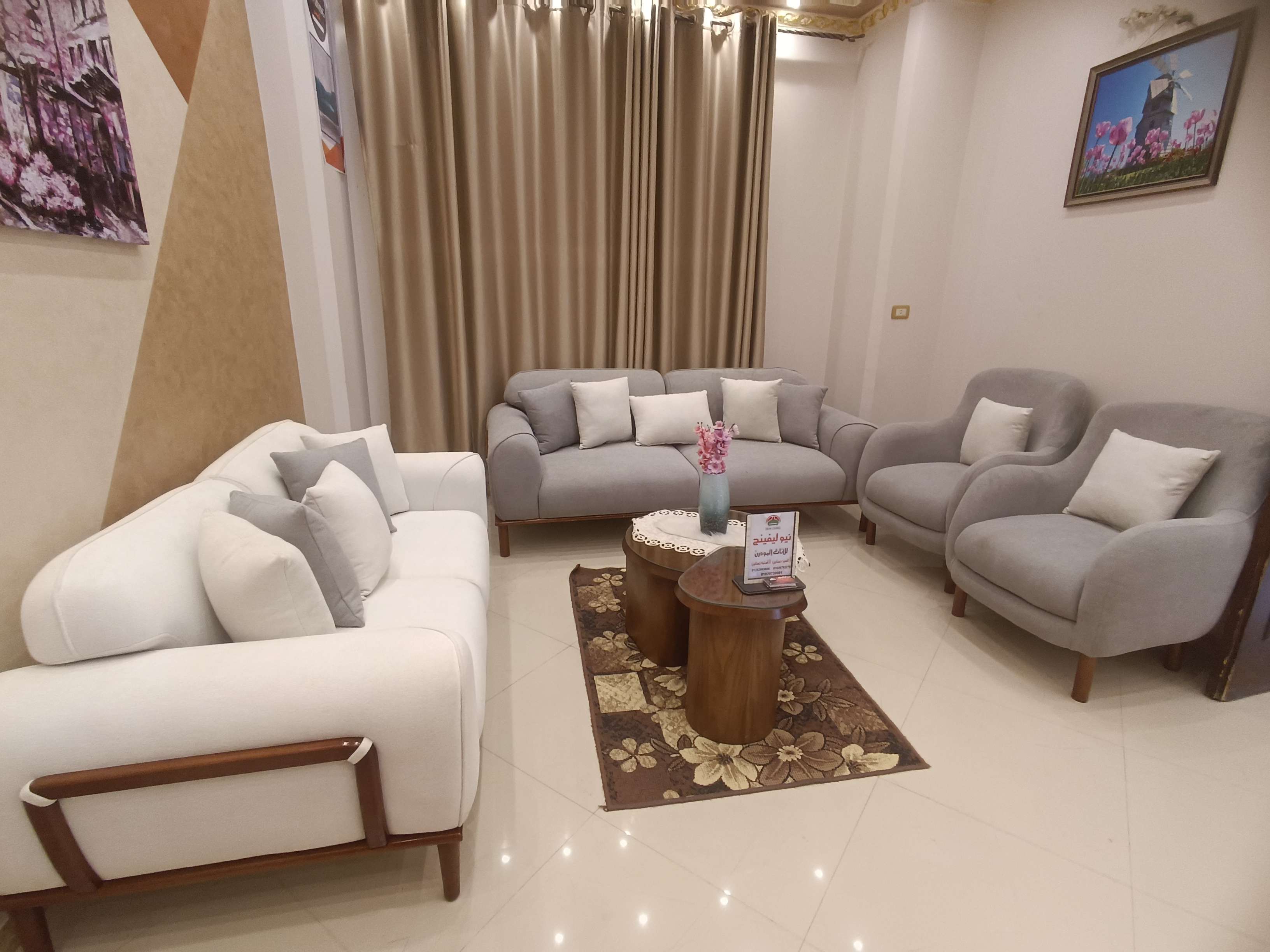 الانتريه مكون من 2كنبه واحدة كبيرة و واحدة صغيرة و الكنبتين ضهورهم متحركة و 2 فتيه وترابيزه قطعتين هدية
