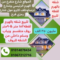 تم تنزيل ١٥٠ الف جنيه شقه للبيع لقطه 152+روف 90متر الموقع١,٢٠٠,٠٠٠ج.م