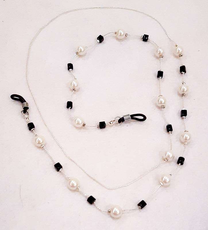 سلسلة نظارة جميلة من اللولى الاوف والخرز الاسود طولها ٨٠ سم