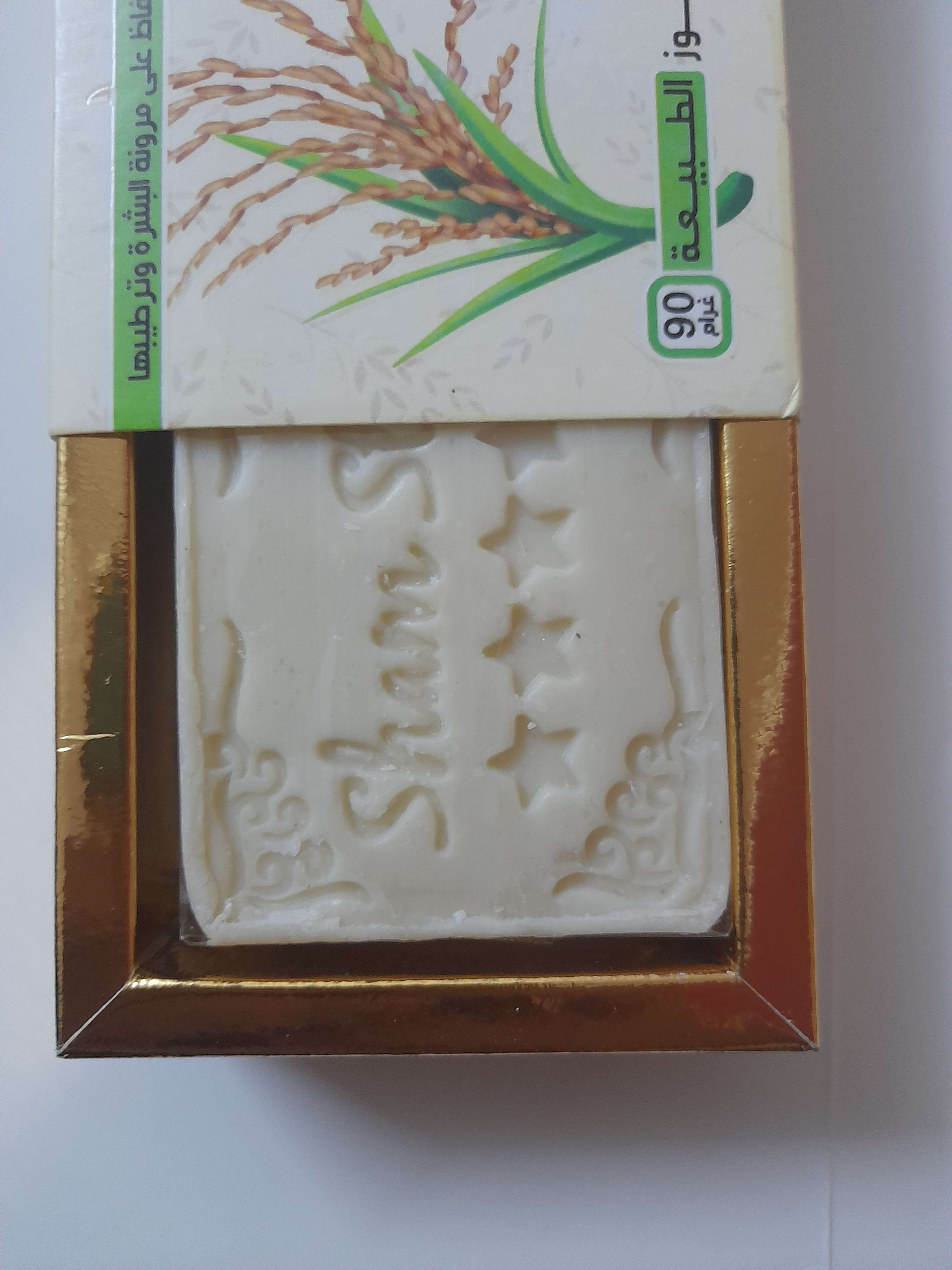 صابونة الأرز تحتوي على نسبة كبيرة من الأرز الطبيعي الغني بمضادات الأكسدة القوية و المعادن و الفيتامينات مثل فيتامين ب، ج، و، أ. كما إنها تساعد على توحيد لون البشرة وتخفيف البقع الغامقة. وتعمل