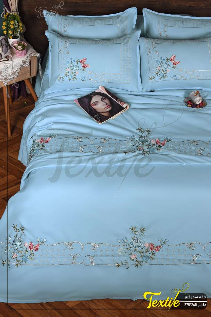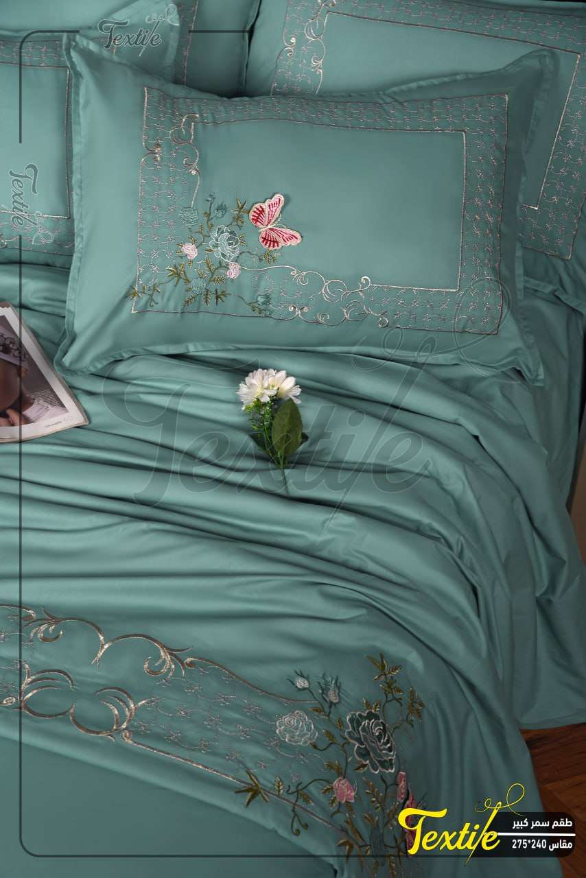 طقم سرير قطن تطريز حرير قيم جدا فخم جدا١,٢٠٠ج.م١,٨٣٤