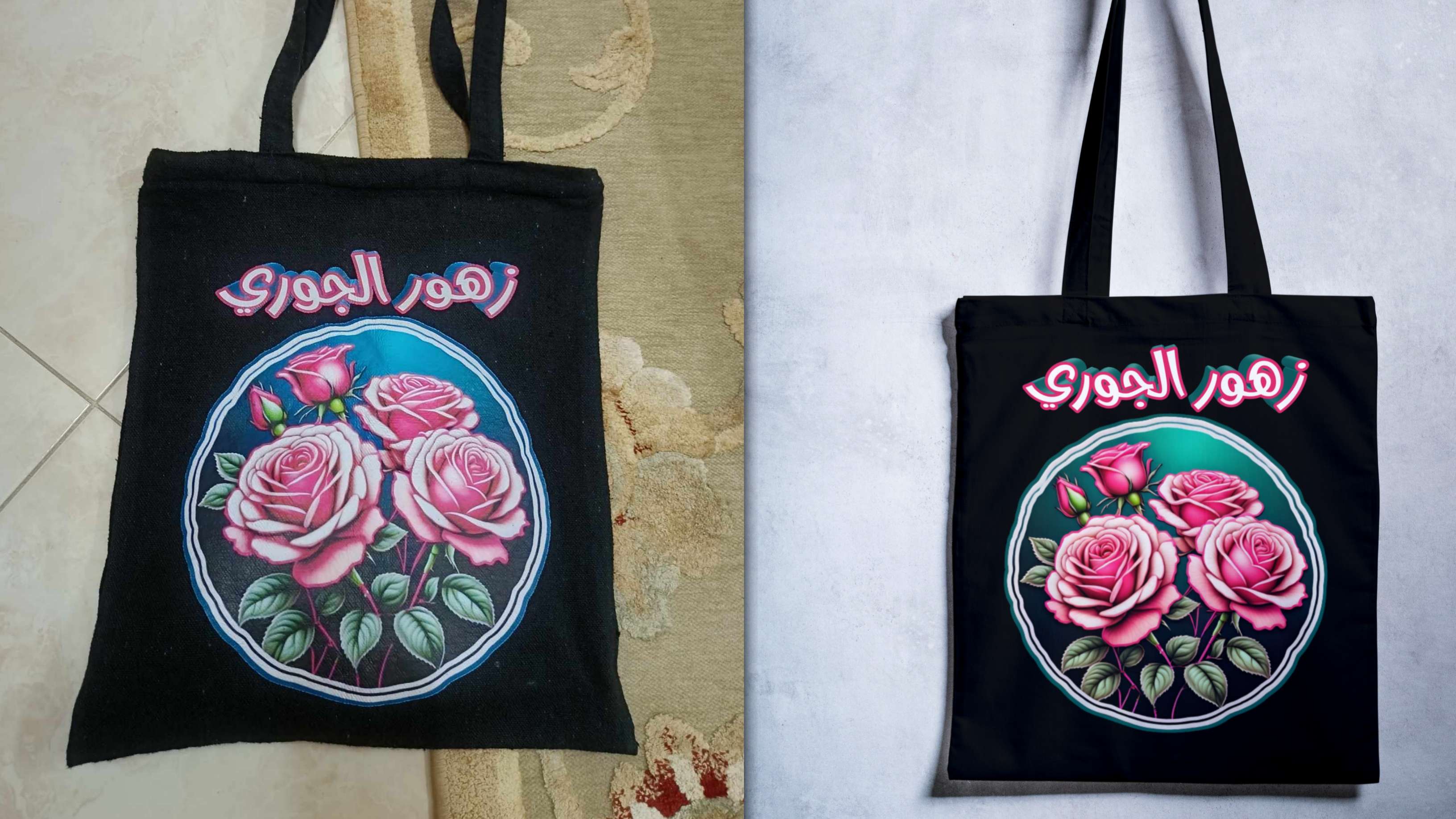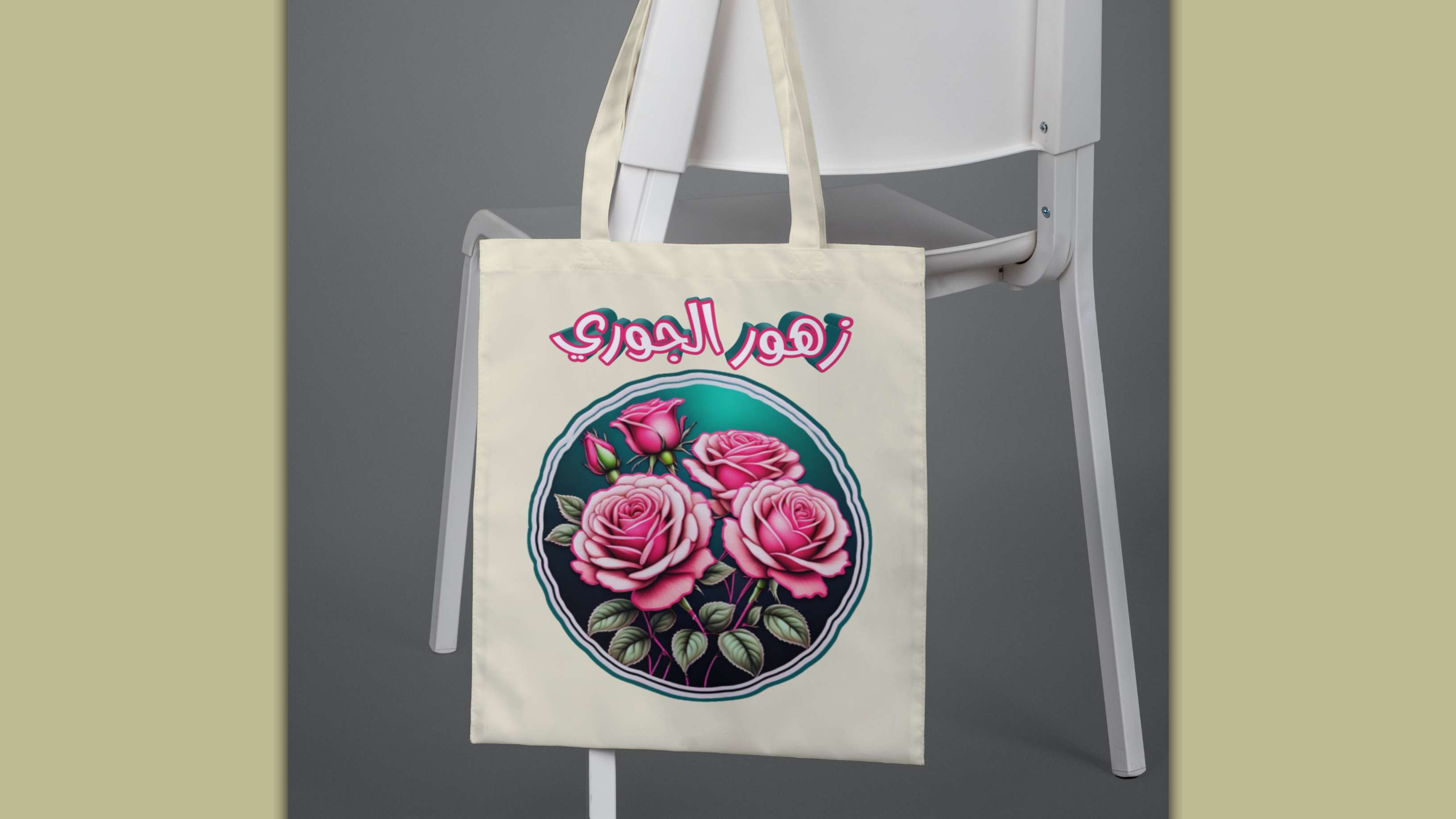 تصميم زهور الجوري من متجر زهور الحب حقيبة توتي باج أنيقة ورومانسية مصممة بعناية لتعكس جمال زهور الجوري. تتميز الحقيبة بتصميم بسيط وأنيق، مع لمسات من اللون الوردي الفاقع الذي يرمز إلى الحب والعاطفة. عر