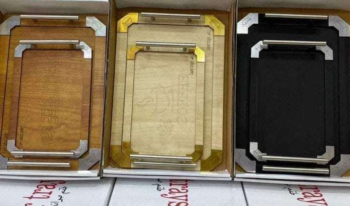 طقم صواني خشب ليزر قطعتين بيد خشب الوان شيك جدا لون خشبي متوفر