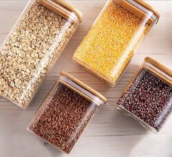 علبة توابل وبهارات اكريلك بغطاء خشب محكم الغلق سعة ٥٠٠ مللتر٤٥ج.م