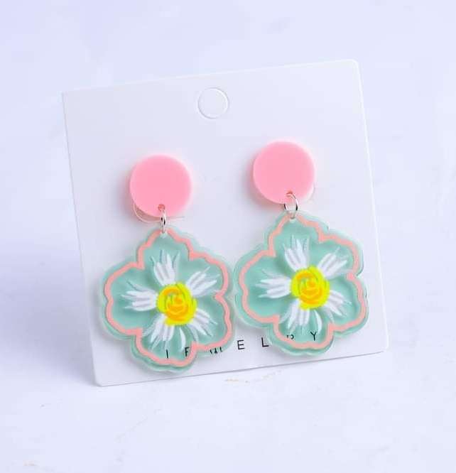 حلق أكريليك على شكل ورد بألوان صيفيه أنيقه