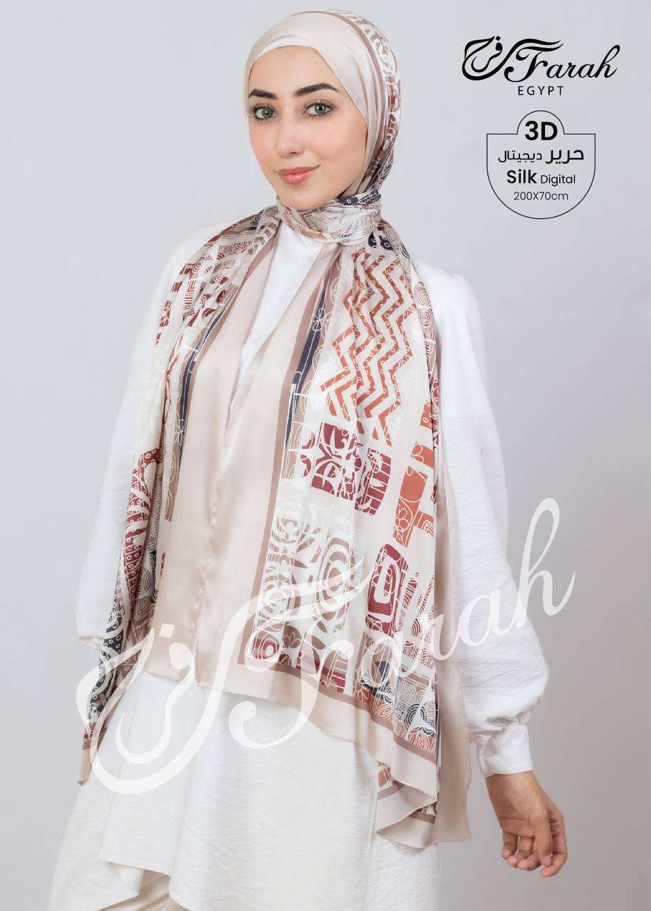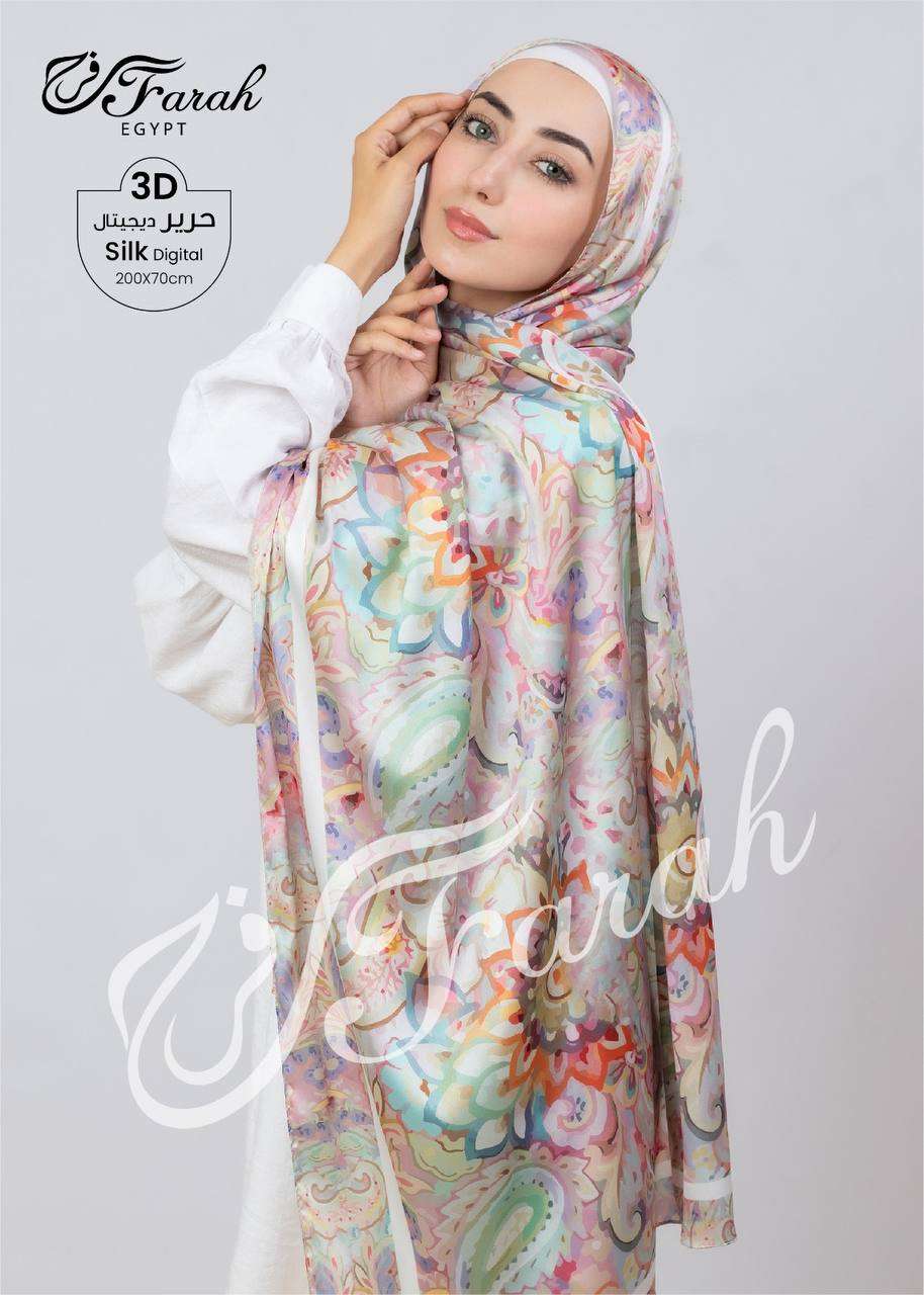 طرحة حرير ايطالى طباعه 5D مقاس 200*75