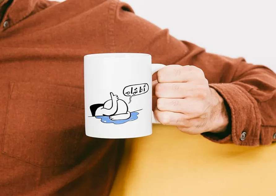مج عربي بتصميم اقتباسات مضحكة - Mg97، سيراميك، 1.0 ml، أبيض