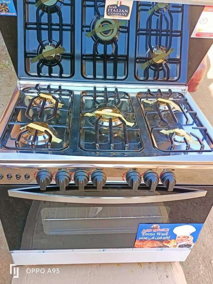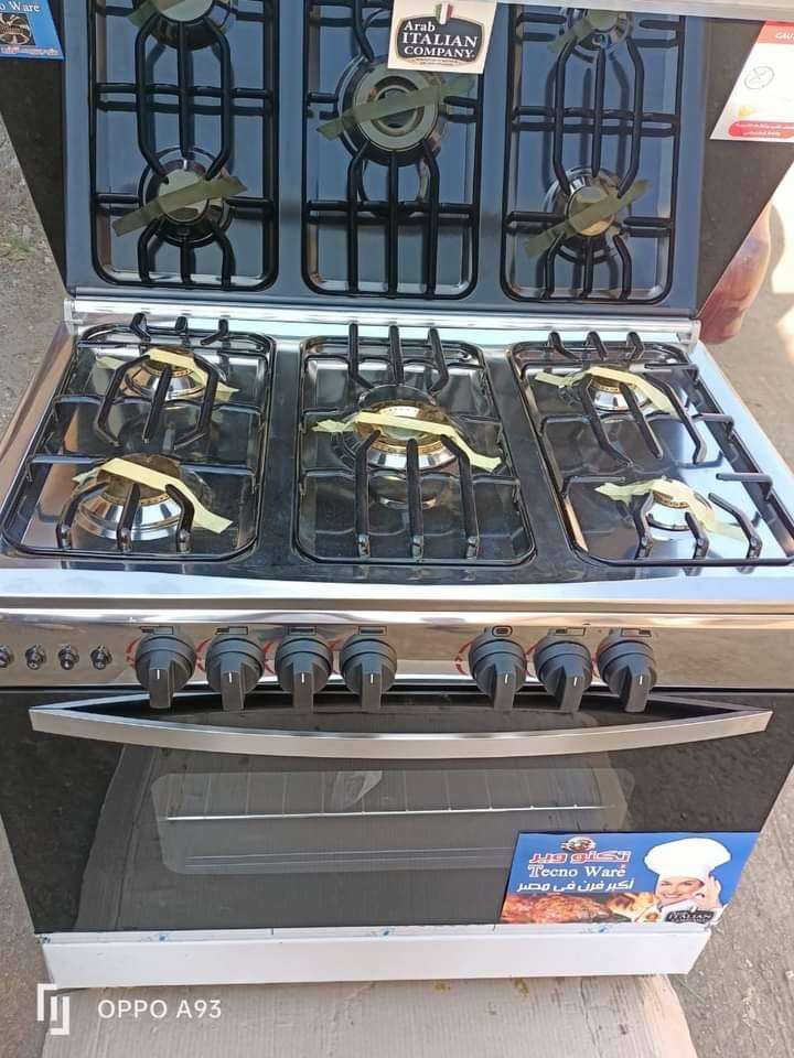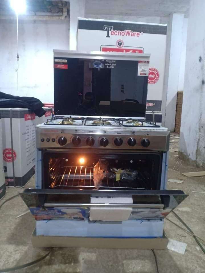 بوتجاز تكنو وير من الشركة الإيطالية ضمان ٥سنوات *مقاس ٦٠في٩٠ ٥شعلة استانلس كامل كو دهش نحاس لمبة فرن شواية مروحة لتوزيع الحرارة اشعال ذاتى مخرجين للغاز الطبيعي والمسال الشوايه والفرن يعملان معا بمفت