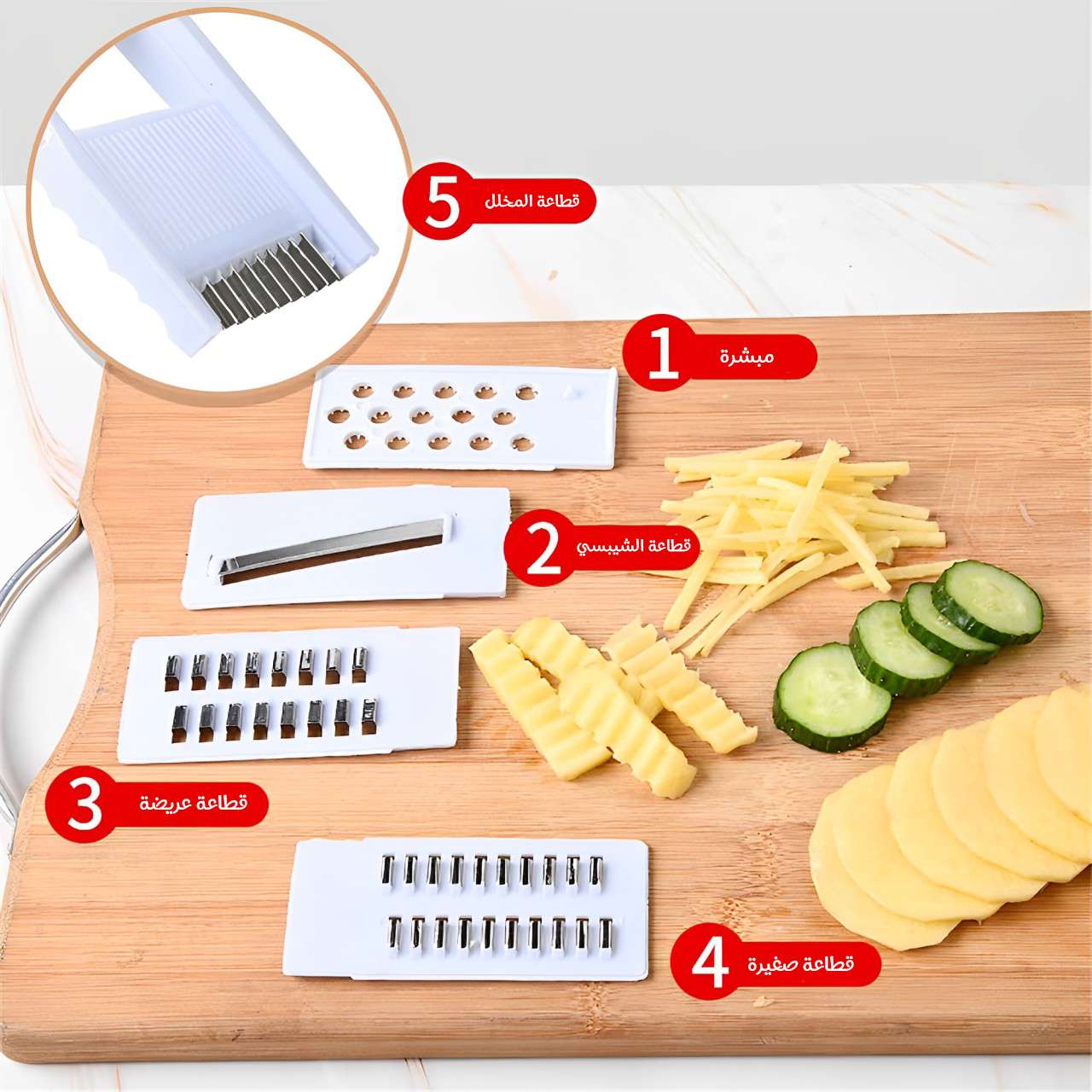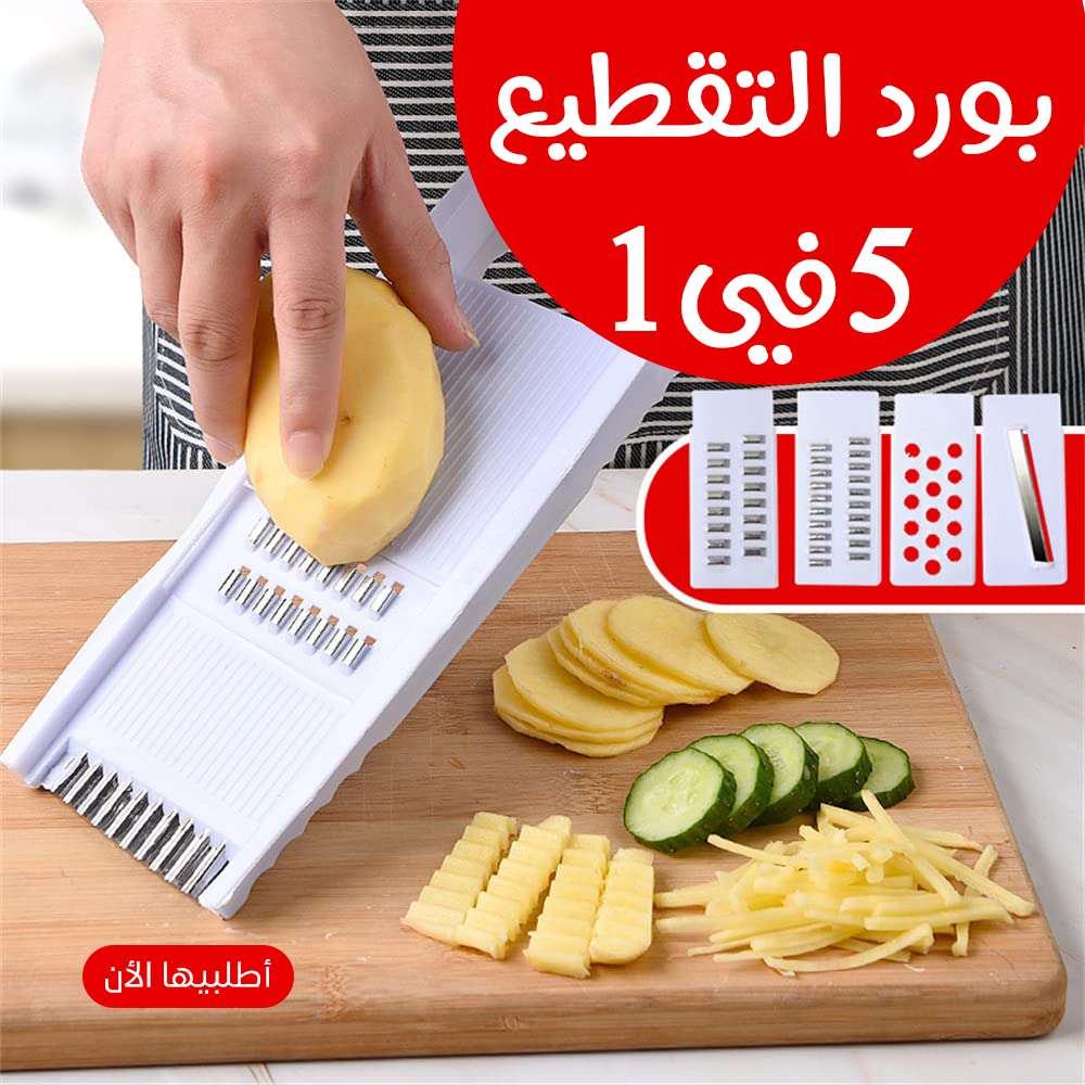 • لو كان مطبخك زحمة من كتر الأدوات الي فيه وحجمها كبييير ؟ • وفرنالك بورد التقطيع ال 5 في 1 • تقدري تقطعي بيها و تغنيكي عن أدوات كتير • • مميزات: • 5 شفرات قابلة للتبديل: • شفرة التقطيع (2 مم) ل