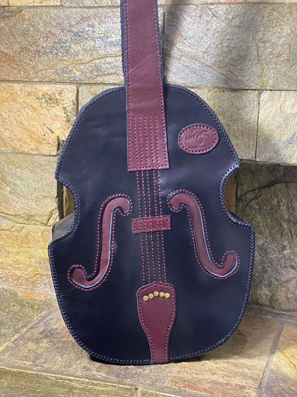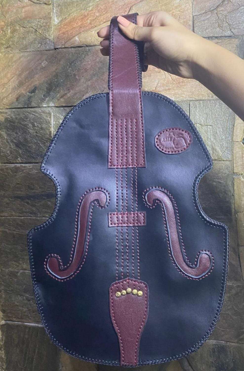 شنطة ظهر جلد طبيعى على شكل آلة موسيقية(كمان) حذف وإضافة وتفريغ وأوتار ألوان ثابتة وآمنة الابعاد ٣٠*٤٠ سم التنفيذ خلال ١٥ يوم السعر غير شامل التوصيل