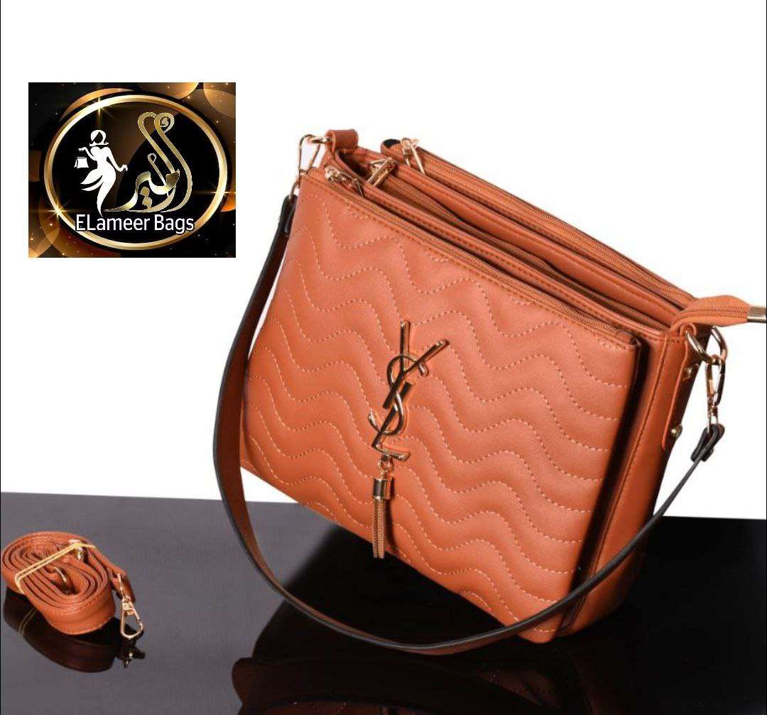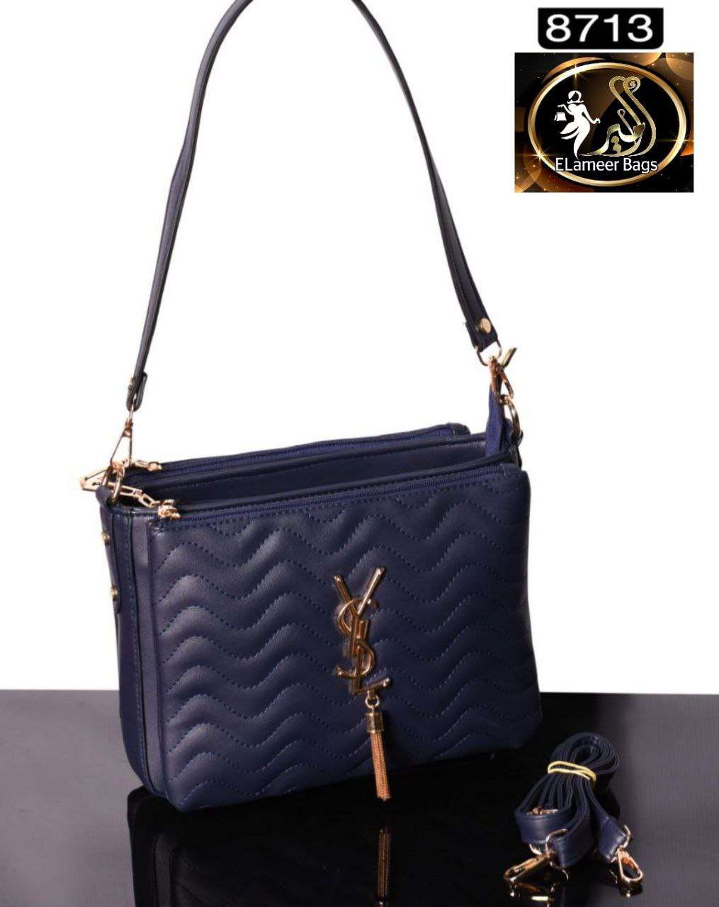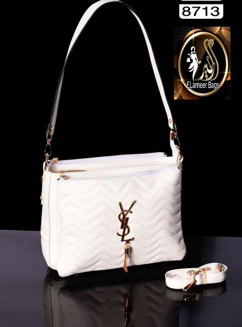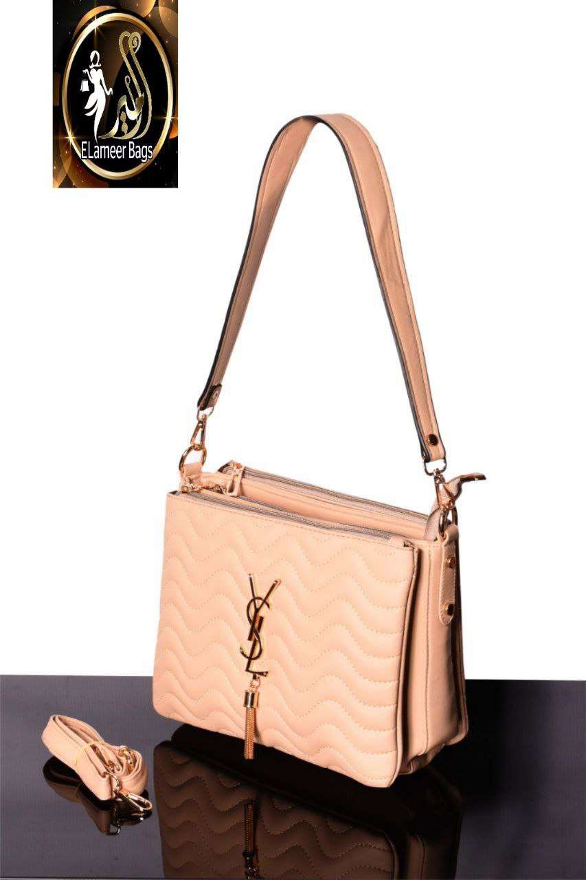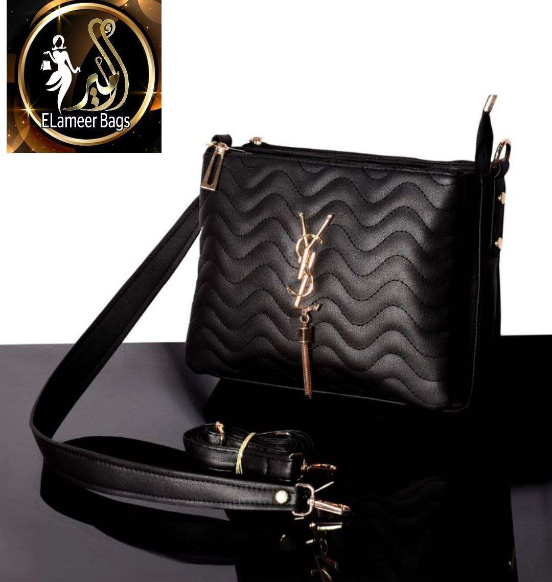 شنطة إيف سان لوران شنطة كتف وكروس عملية جدا وشيك .فنش عالي الجودة شكل وحجم رووووعه الخامه جلد كابتونيه مموج .جوده عاليه 2حزام كتف وحزام طويل .3 سوسته 3 جيوب خامات مستورده . بطانه ماركات بس