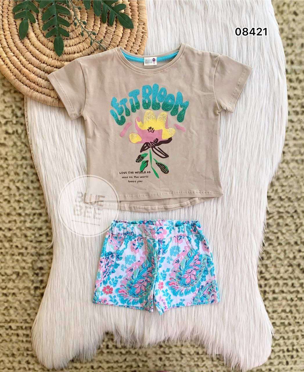 طقم بناتي قطعتين تيشرت قطن - شورت جبردين قطن مقاسات: 1 4 5