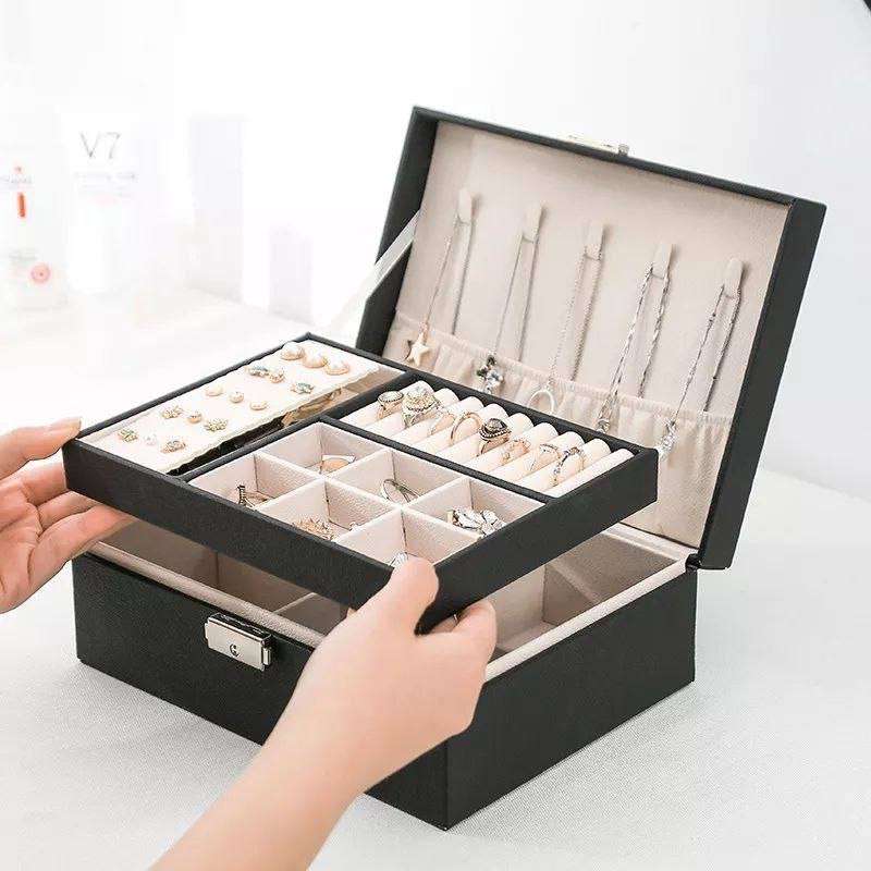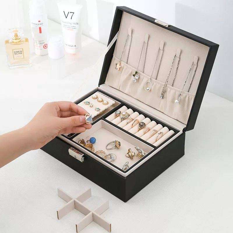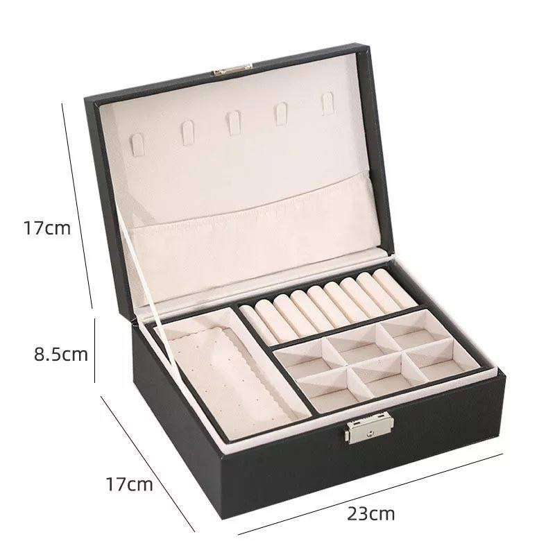 علبه الاكسسوارات جلد بمفتاح للمجوهرات وسلسل و اكسسورات 2دور 👇👇👇👇 روعه مقاس23سم *17سم 9سم بمفتاح حمايه 💡💡💡 خامه جلد وجوده عليا جد⚡️⚡️ متاح اللون الاسود ملحوظه هامه جداا ده منتج ا