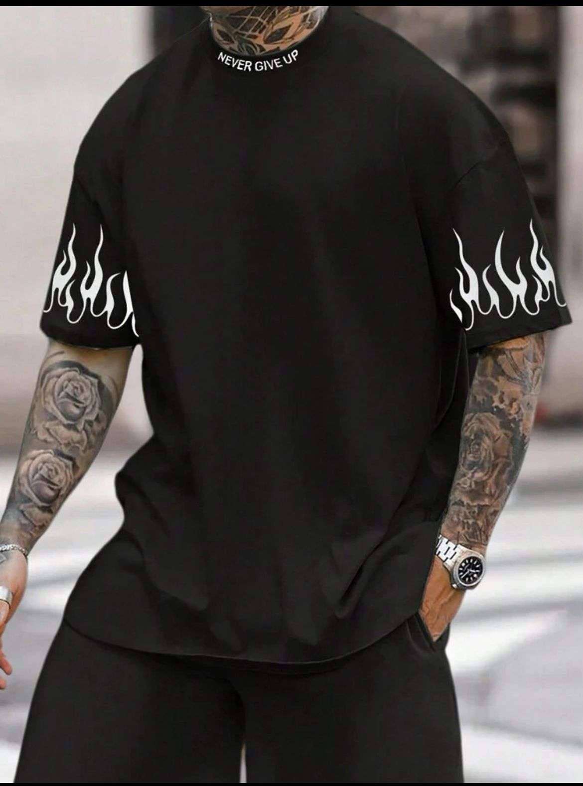 تيشيرت Fire الخامة: سمر ميلتون تقفيل وفنش عالي الجودة معالج ضد الوبرة والانكماش خامة لوكس المقاسات: مقاس L من 50 إلى 65 مقاس Xl من 70 إلى 80 مقاس 2Xl من 80 إلى 110 الألوان : (أسود، ابيض)