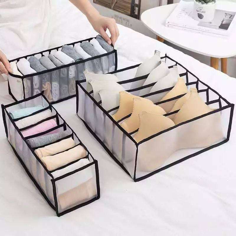 جديد والوان جديده ♥ منظم ملابس داخليه موديل 2023♥ طقم منظم اندرات وبرهات وشربات وفوط ♥ الطقم 3قطع الخامه نايلون شبك شفاف قووي جداااا قابل للغسيل والتنظيف مقاس الكبير 6فتحات 30سم *30سم ارت