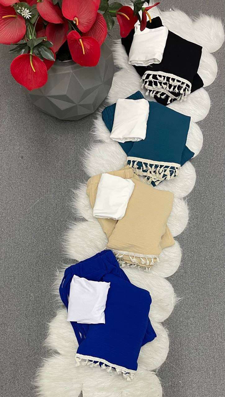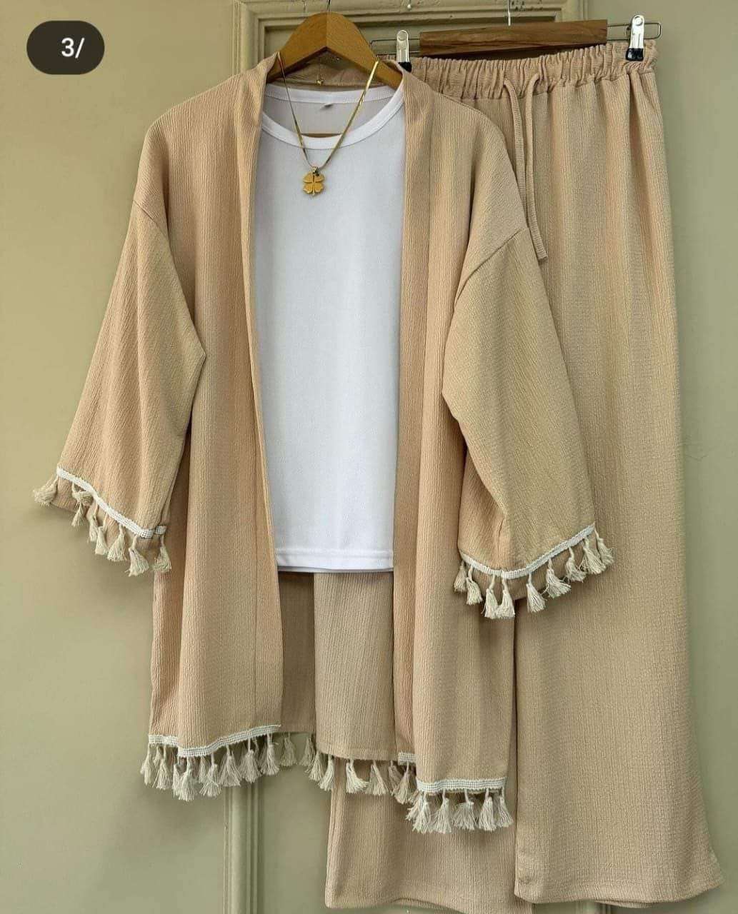 السوت الترندي كل قطعه فيه تقدرى تلبسيها لواحدها. ع طقم تانى مينفعش السوت ده ميبقاش عندك الموديل💫سوت3قطع مطعم چوبير الخامه🔥سي واي تركى عالي الجوده المقاس🔥ون سايز تلبيس ل85.90ك مرتاح