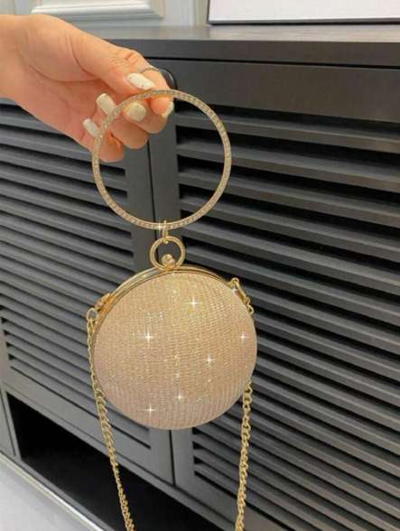 حقيبة عشاء حقيبة جديدة سلسلة يدوية عالية الجودة فاخرة حقيبة رسول حقيبة يد دائرية ماسة مشرقة حقيبة كتف أنيقة