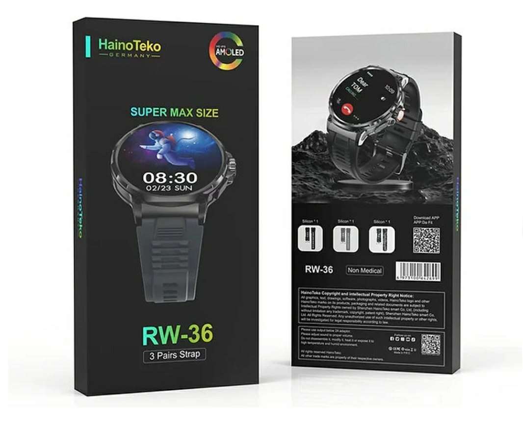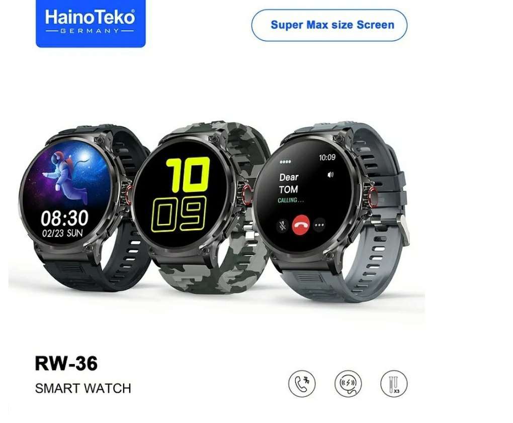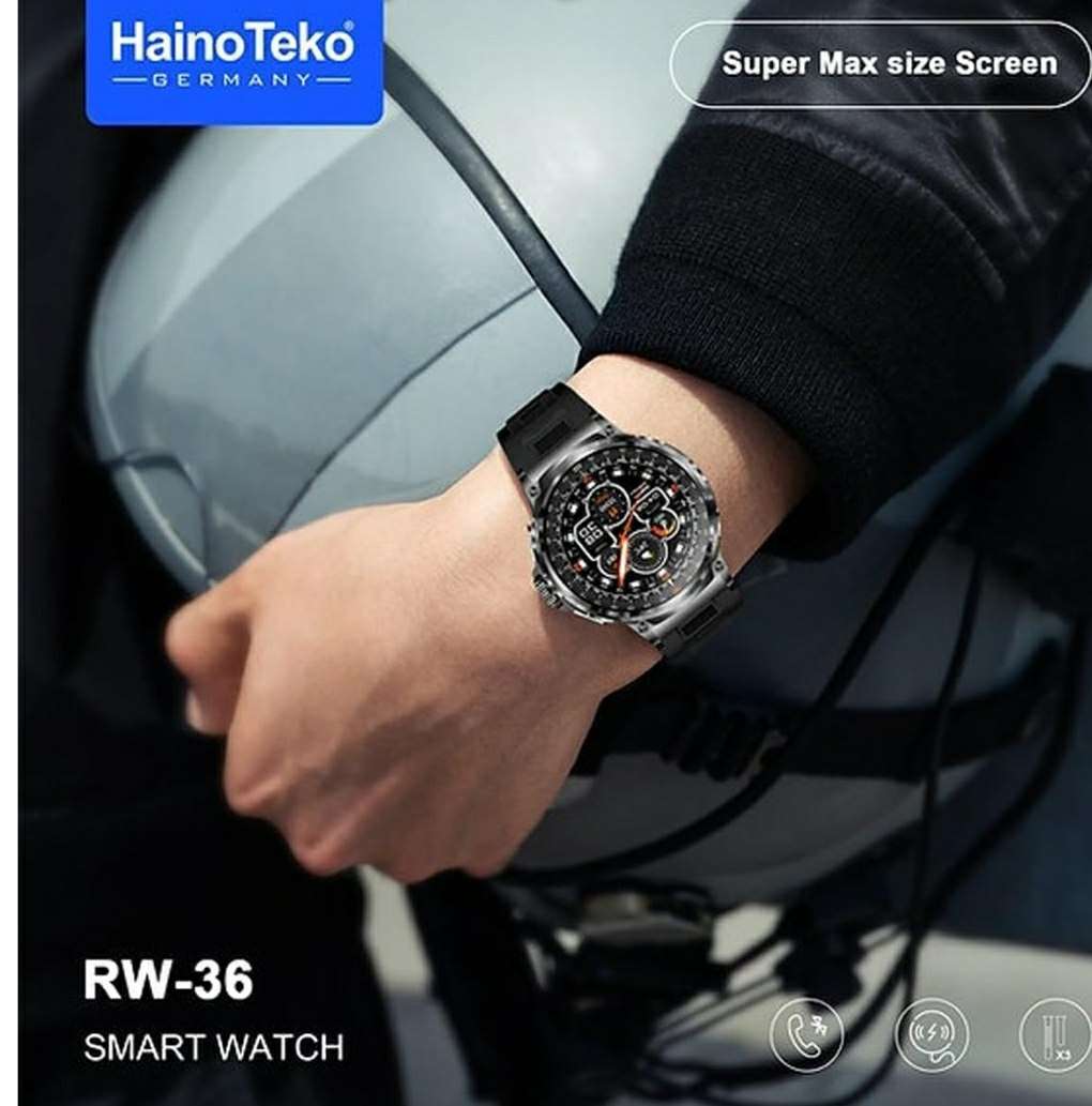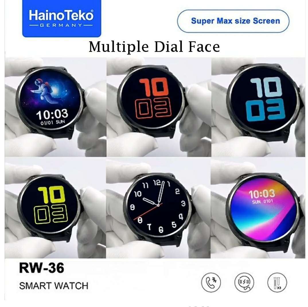 ساعات ذكية - sws1362 ساعه هانيو تيكو rw 36 sws1362ساعة ذكية من هاينو تيكو جيرماني RW36 سوبر ماكس بحجم دائري وشاشة أموليد كاملة مع 3 أزواج من الأساور للرجال والأولاد ساعة ذكية RW-36 متوافقة مع أجهزة