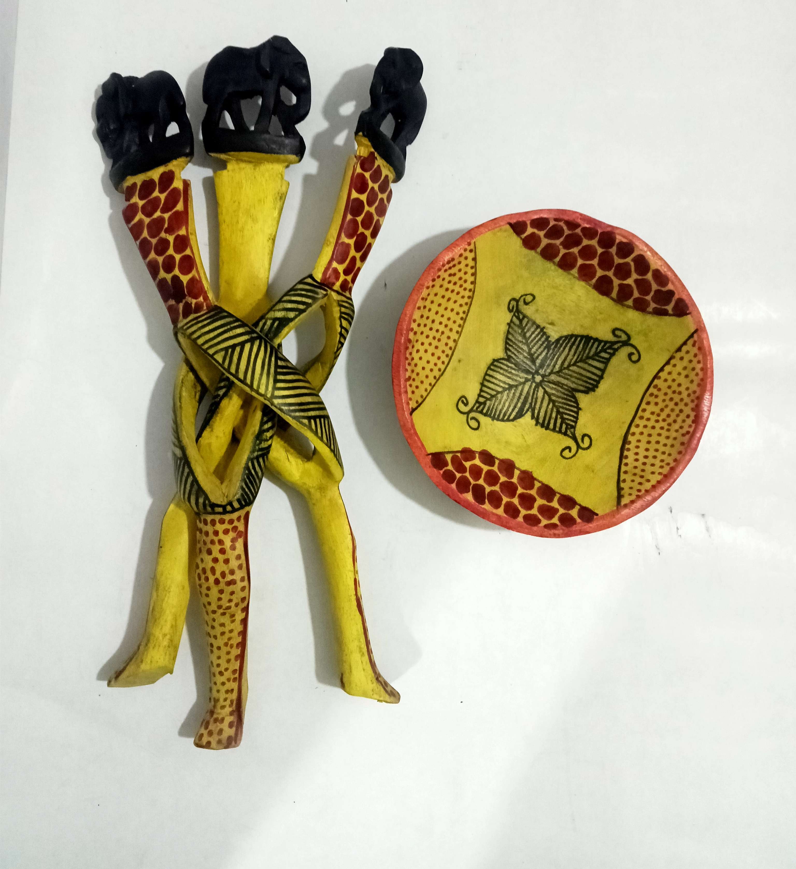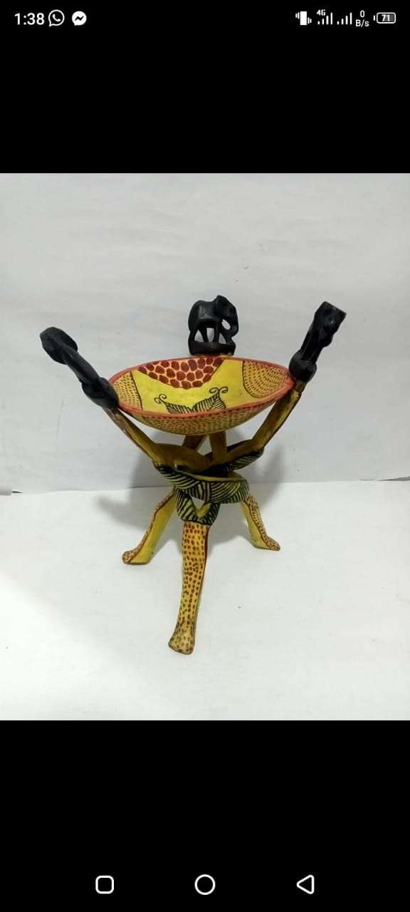 يوجد لدينا طبق افريقي بالحامل خشب كيني نحت يدوي ألوان طبيعية مقاس ٥٠سم رؤس القاعدة ثلاث افيال يرتكز عليها الطبق منتهى الروعه والجمال