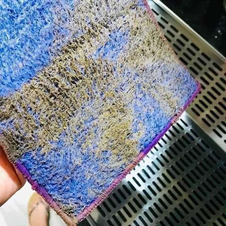 الفوطة الثلاثيه المووووووف 💜 _ ثلاثيه بعني عندك 6أوجه تتشغلي بيهم 👍 _ تتنيها ومش هتحتاجي تغسليها كل شويه 👏 _مبطنه اسفنج يعني قوية 💪 _ممكن تستخدميها في كل حاجه فيها دهون او بقع صعبه ✨💦🤗
