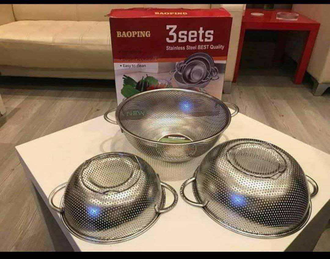 🛒 طقم مصافى 3 قطع👍❤️ مصافي خضروات استالس 3 قطع ♥️♥️ عاد من جدييييد❤️ طقم مصافي استانلس 3 قطعة مع بعض مقاسات مختلفة و الخامة رائعة مستورد😍 استانلس ضد الصدأ❤️ جوده عاليه جدا❤️
