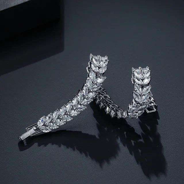 انسيال ورقه شجر بلاتين بفصوص زركون مبيغيرش لون ضمان