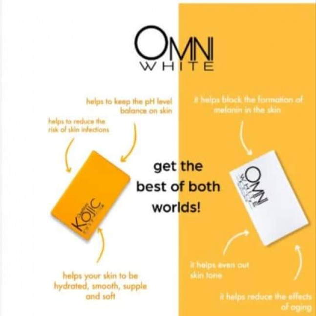 صابون أومني وايت كوجيك صابون أومني وايت كوجيك هو مزيج مثالي من أفضل مكونات التبييض والتفتيح وهي الجلوتاثيون المؤكسد وعرق السوس وألفا أربوتين وحمض الكوجيك الذي يساعد ليس فقط على تفتيح البشرة بشكل فع