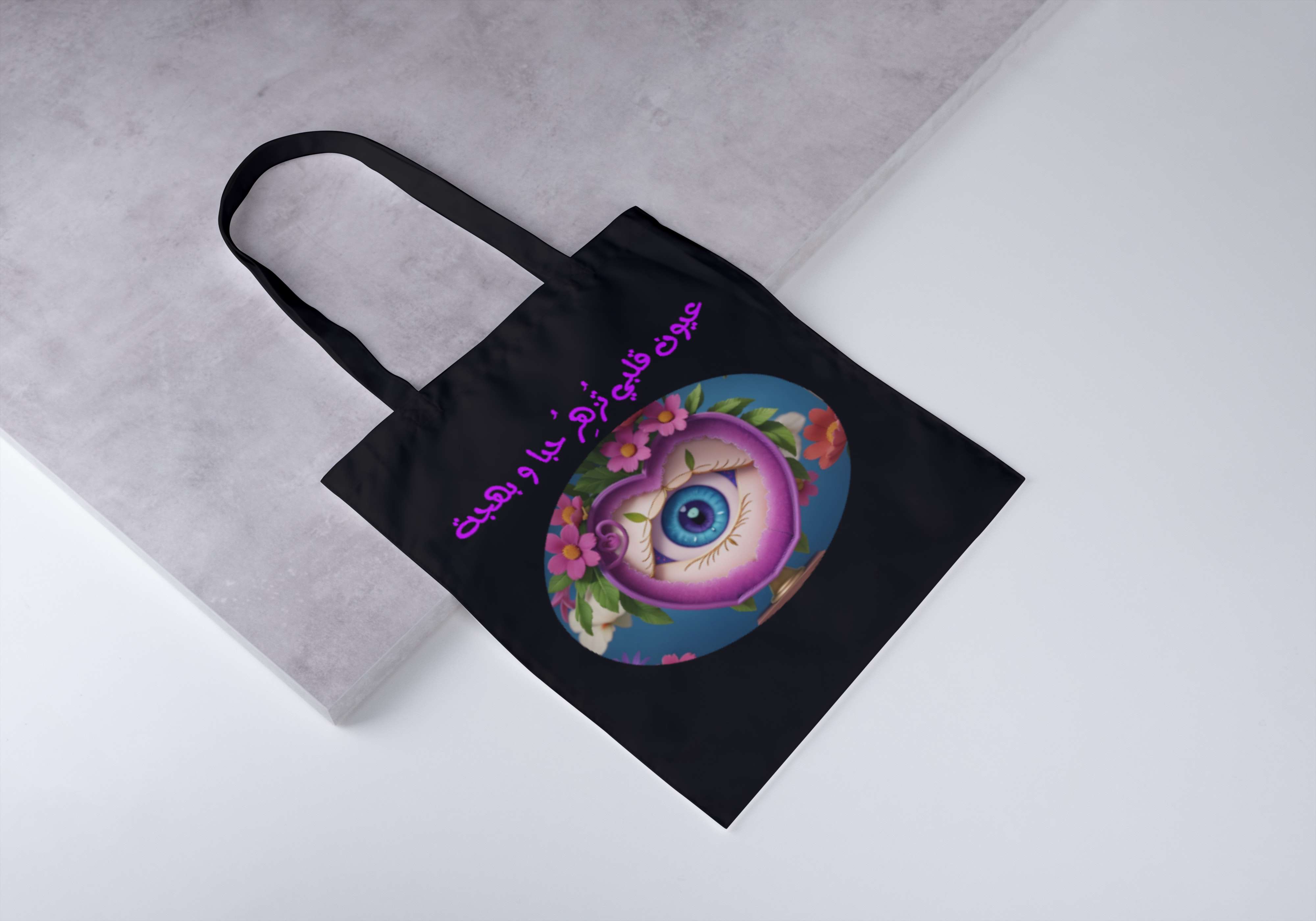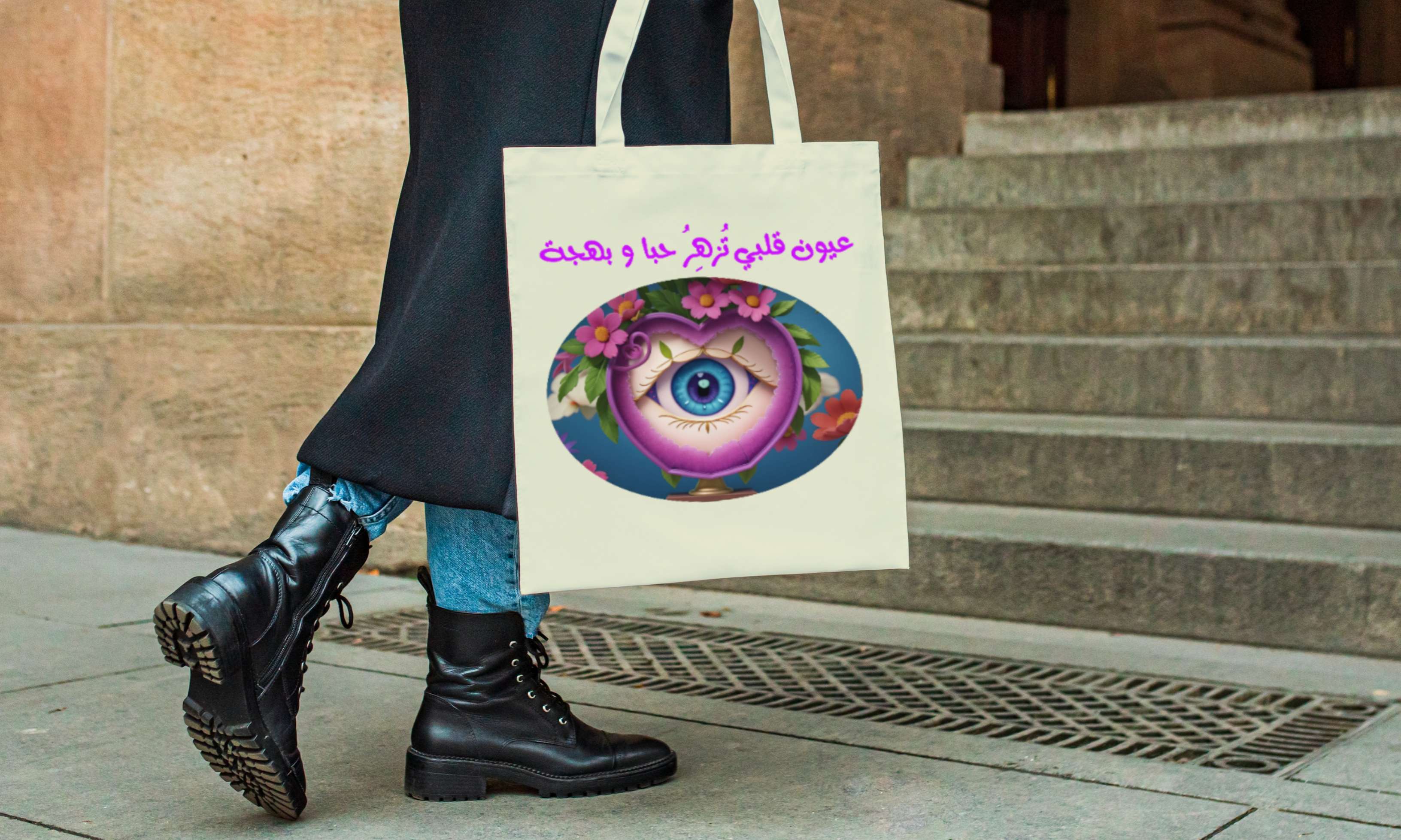 شنط توتي باج زهور الحب عيون قلبي هل تبحثين عن حقيبة توتي باج أنيقة و عصرية و مميزة ؟ إليك حقيبة توتي باج العصرية هي قطعة فنية تحمل أجمل عبارات الرومانسية و البهجة معا. شنطة توتي باج " عيون قلبي تز