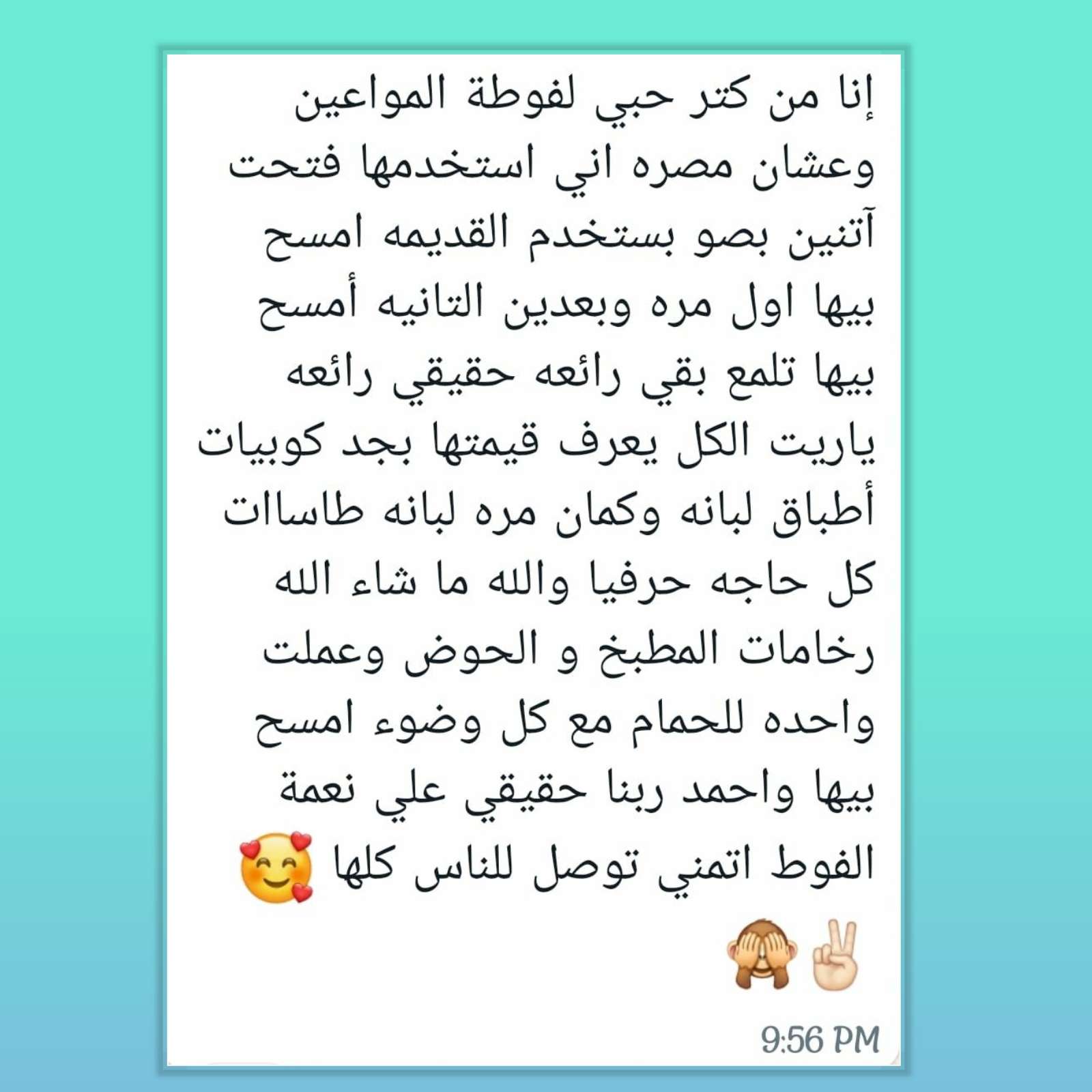 الفوطه متعدده الاغراض بالوان مختلفه لغسل المواعين بدون بريل أو فيري بالماء والفوطه فقط وايضا غسيل الفواكه والخضار بعنايه فائقه ولا داعى لنقعها فى الماء و الخل استخدام الفوطه في تنظيف حول الحوض والتل