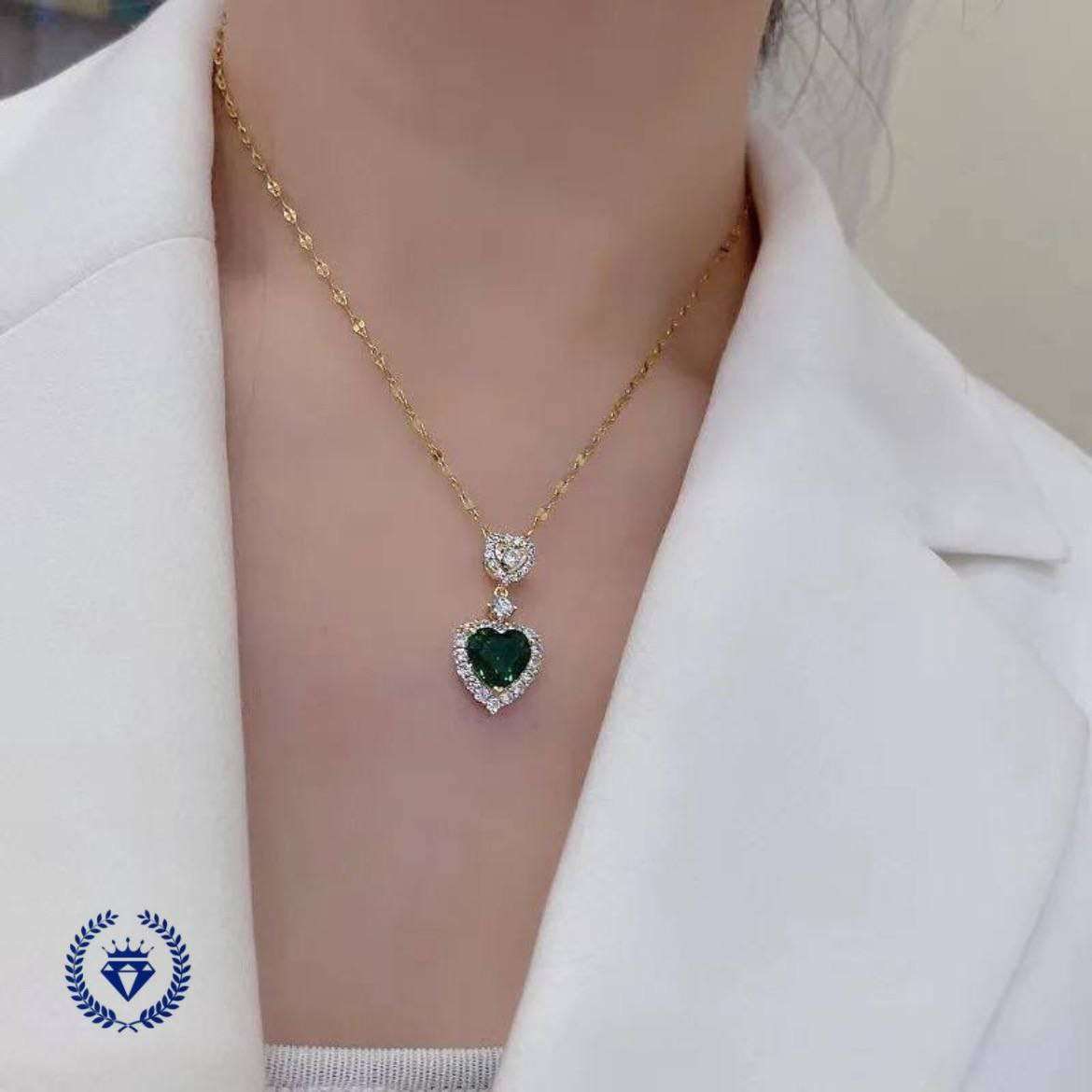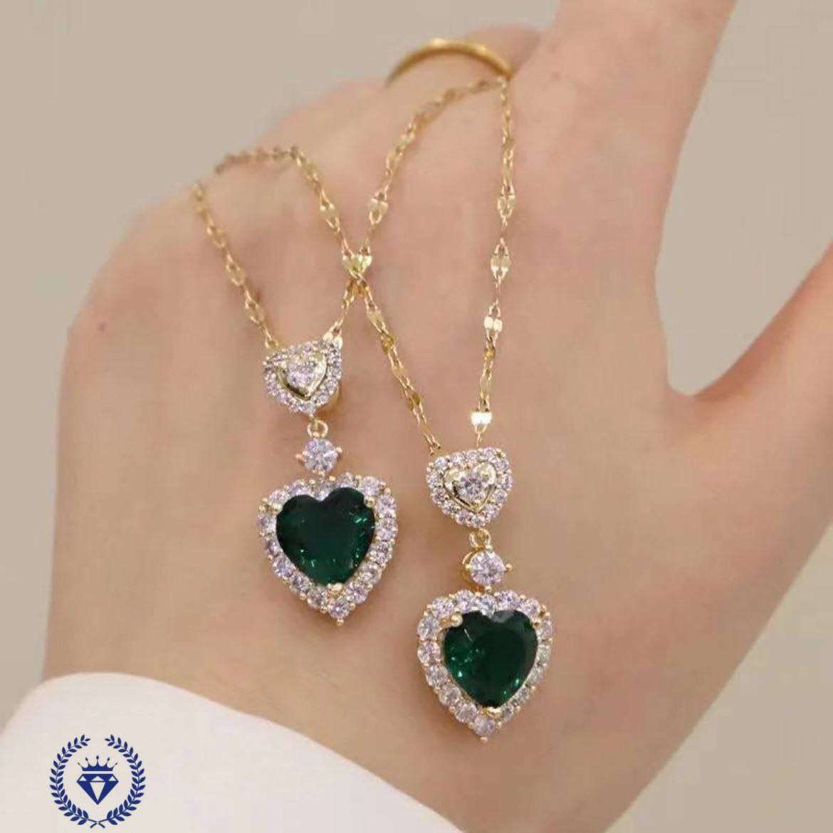 سلسله قلب فص اخضر استانلس استانلس عيار 316 مطلي بماء الذهب ضمان مدى الحياة ضد الصدأ