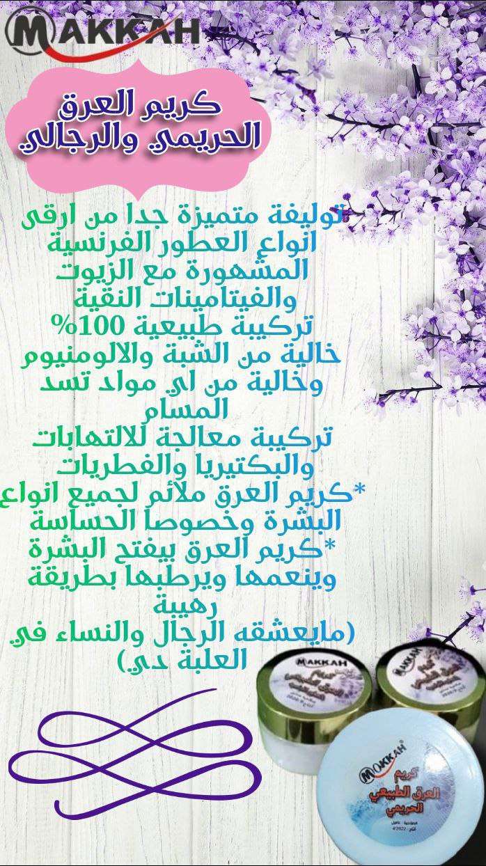 كريم العرق الطبيعي ١٠٠%👍خالى من👈 الألومنيوم ،وأى ماده تسد المسام👈 معالج قوى للإلتهابات والبكتيريا والفطريات👈 مناسب لجميع انواع البشره وخصوصاً الحساسة لإزاله رائحه العرق🤧 ريحته جميله جدا😍🤩🌹 وثا