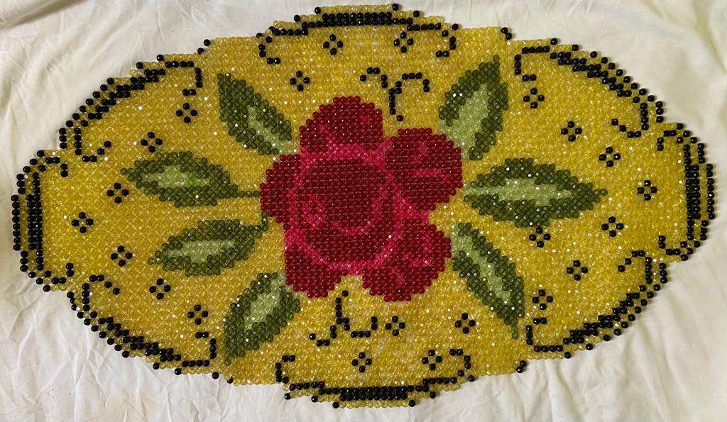 مفرش خرز بنى فى اصفر٦٥٠ج.م