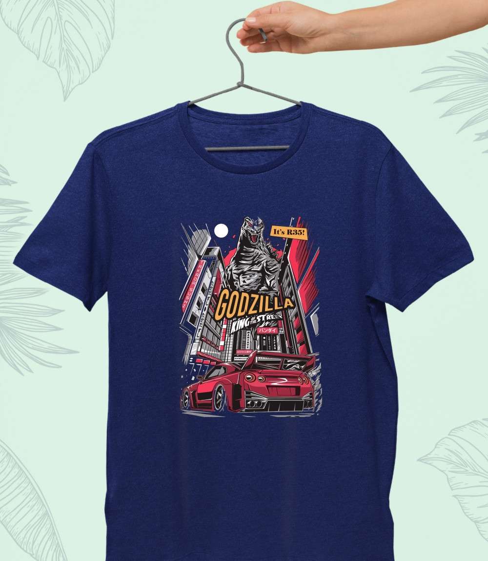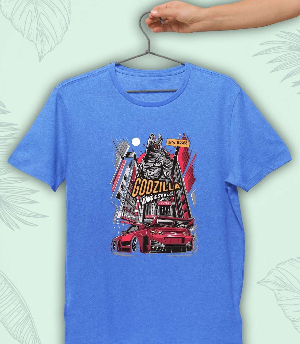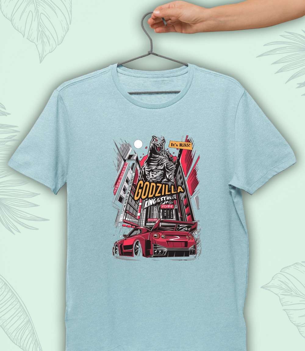 مصنوع من القطن المصري خامة قطن 100% خامة لا تكش ولا تبهت تصميم GTR Godzilla طباعة عالية الجودة DTF