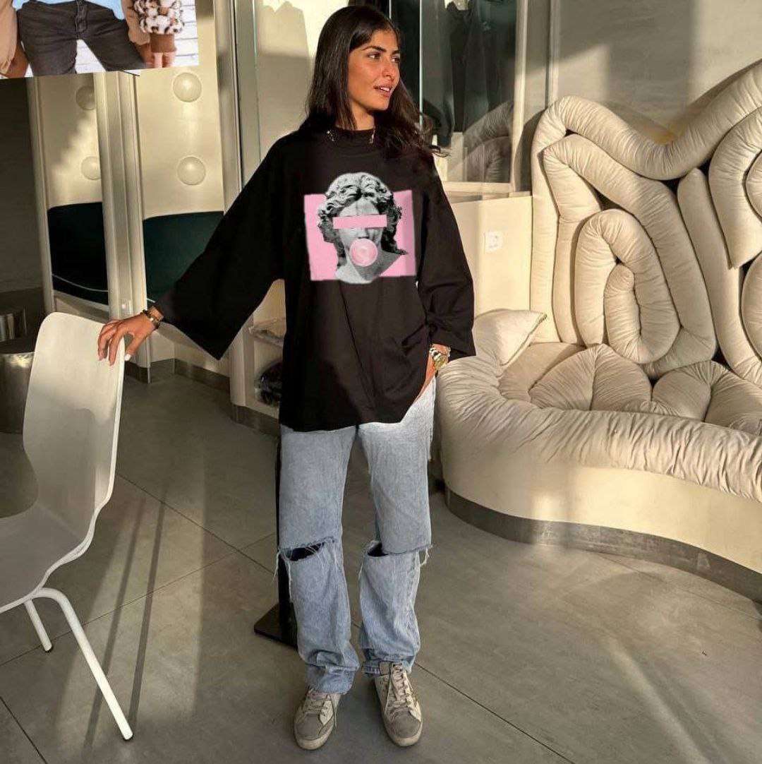الاوفر سايز بتاعنا كمان يجب ان يكون 👆🏻 يعني مُنتهي الراحه والرحرحه🫢😂 الموديل🍓تى شيرت اوڤر سايز مطبوع الماتريال🍓قطن ليكرا مستورد عالى الجودة المقاس🍓فرى سايز تلبيس ل85.90ك مرتاح