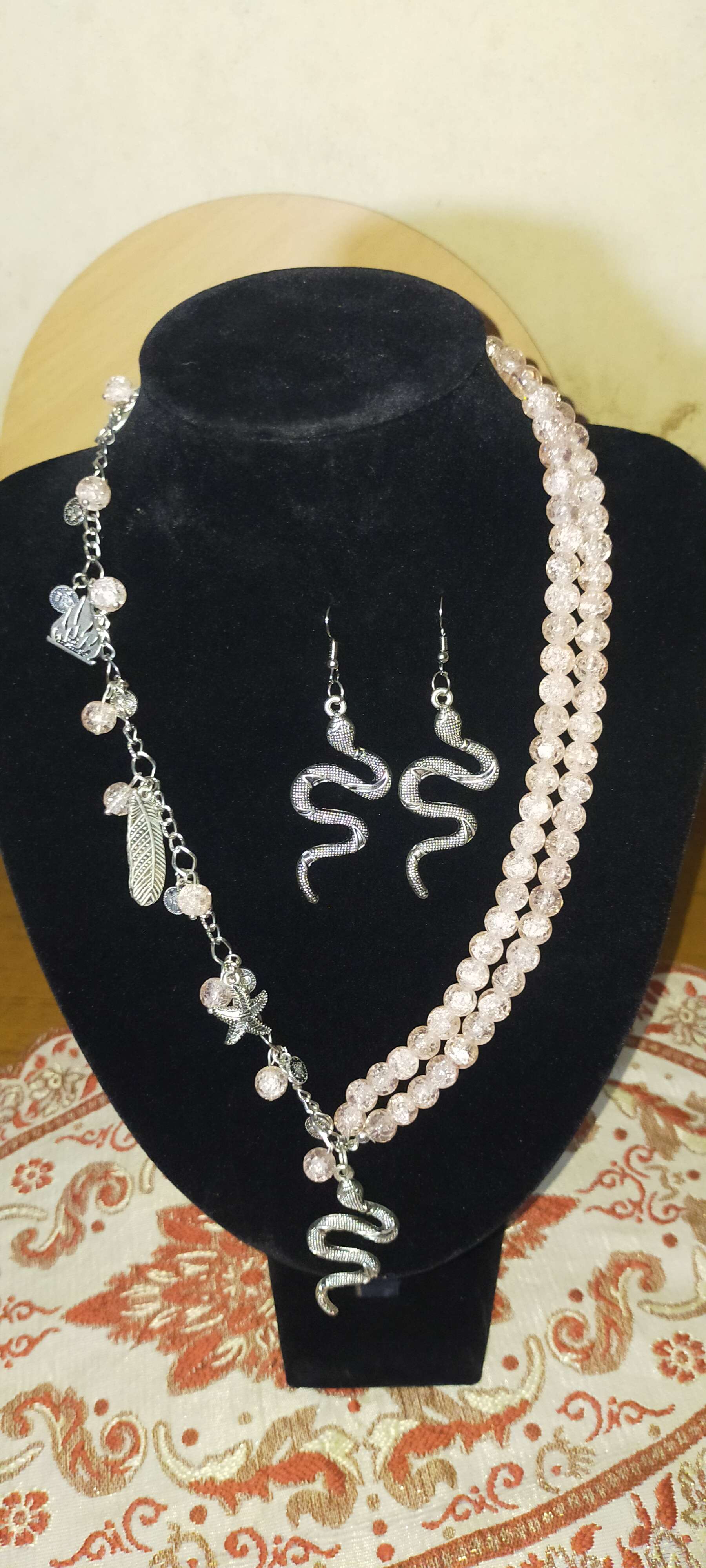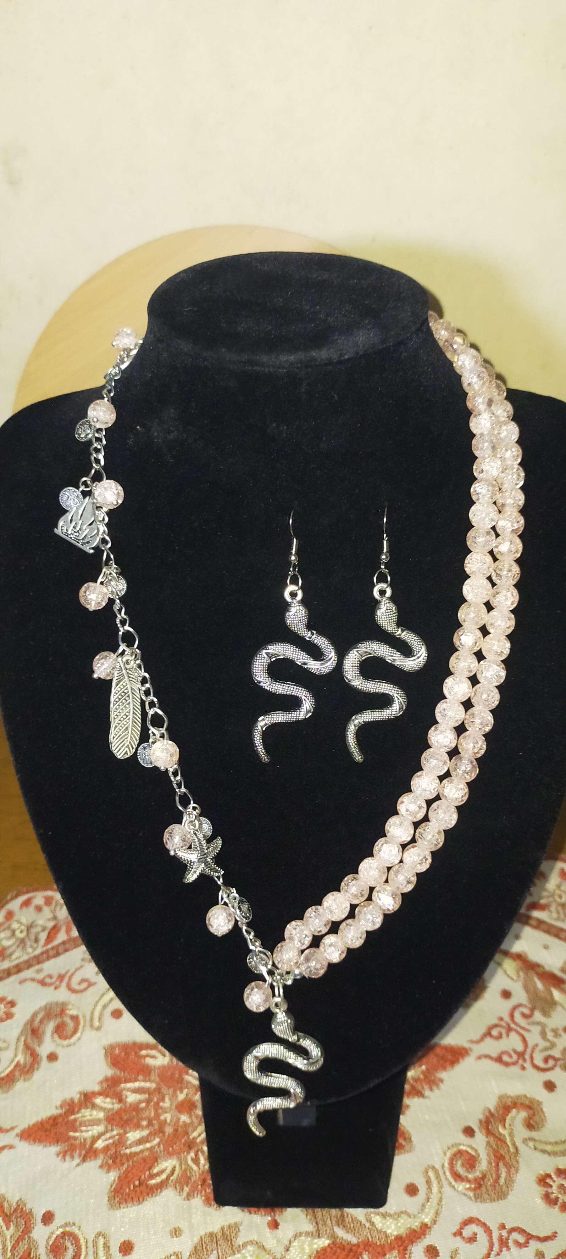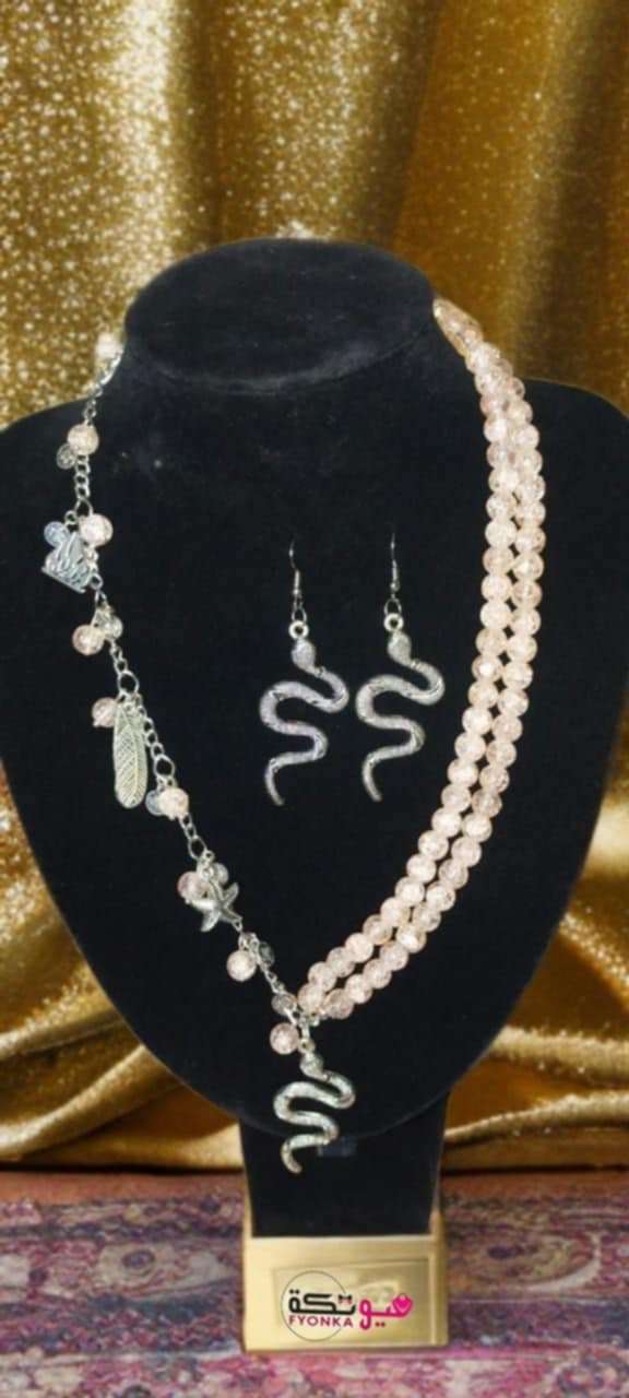 عقد وحلق من خرز فتافيت السكر ودلايات معدن