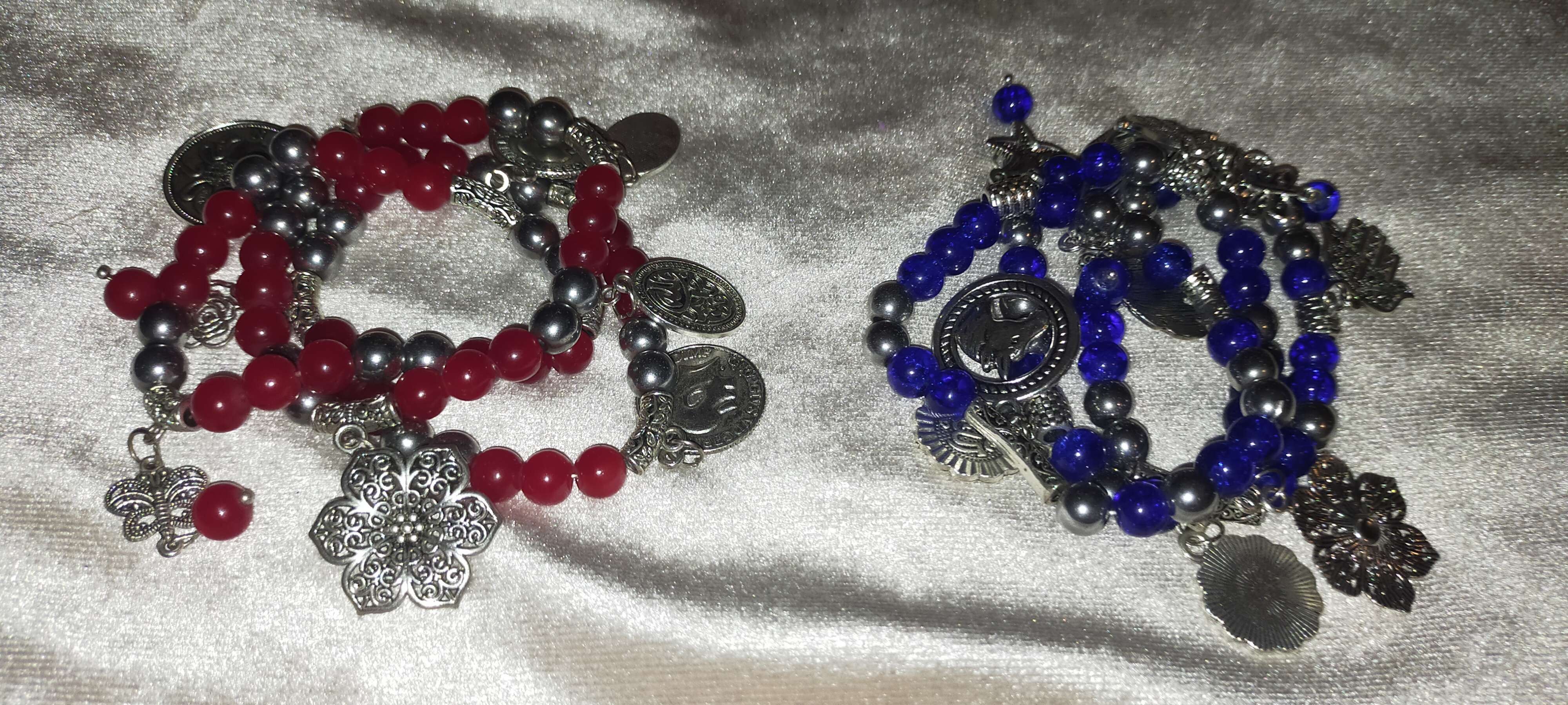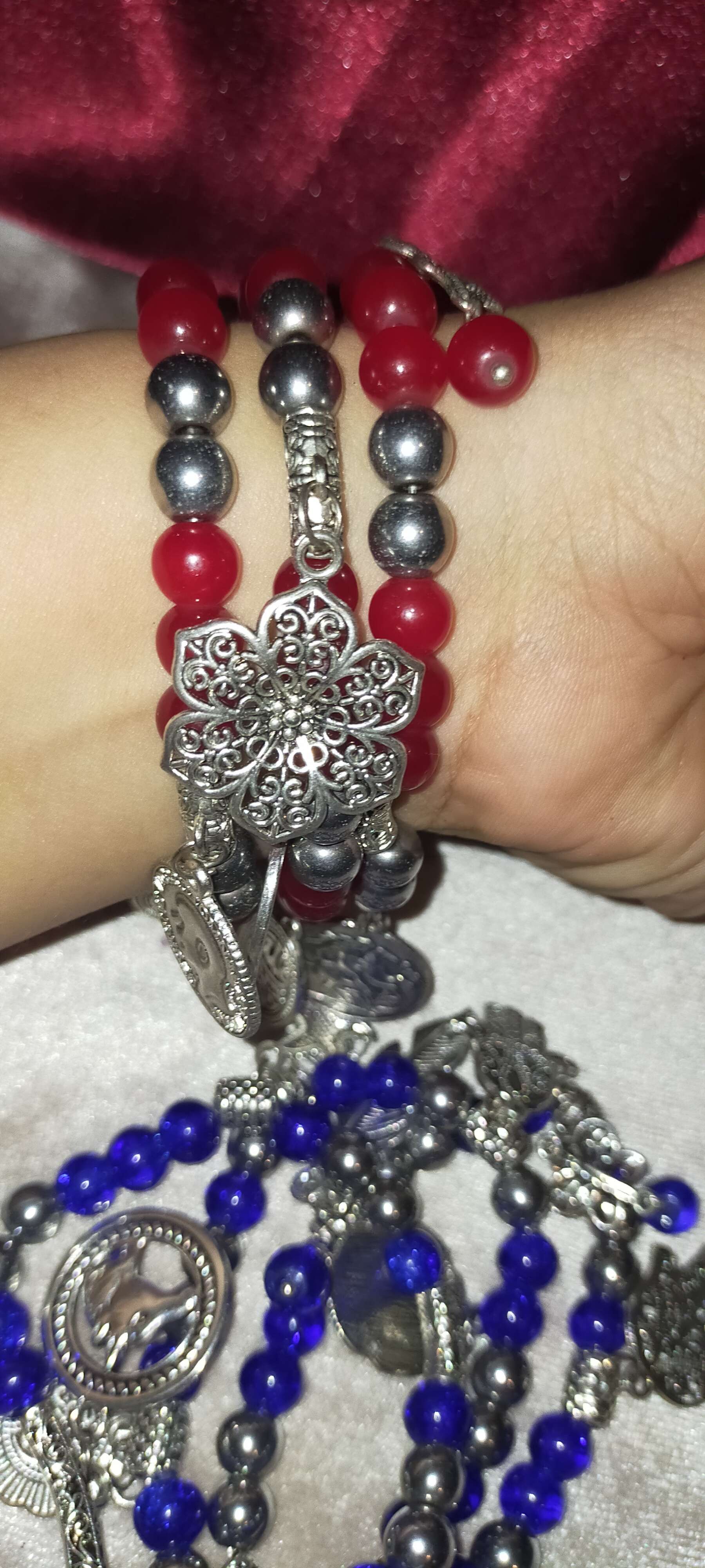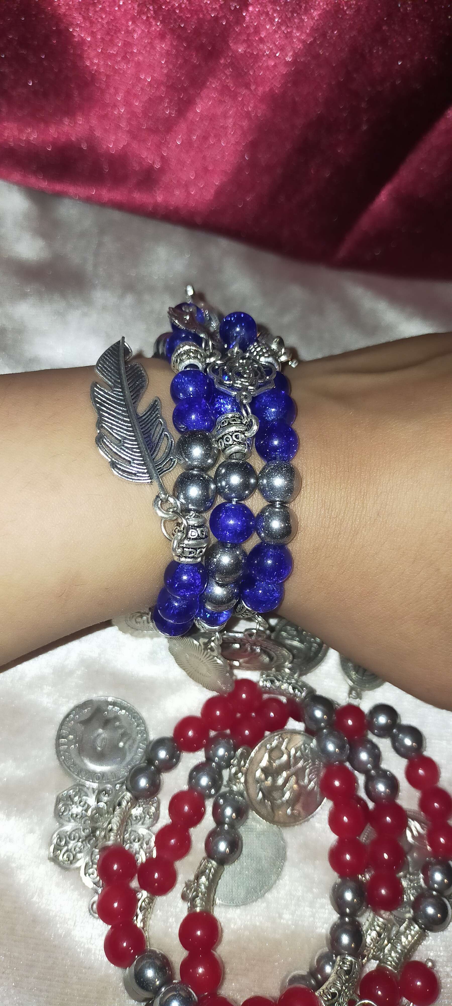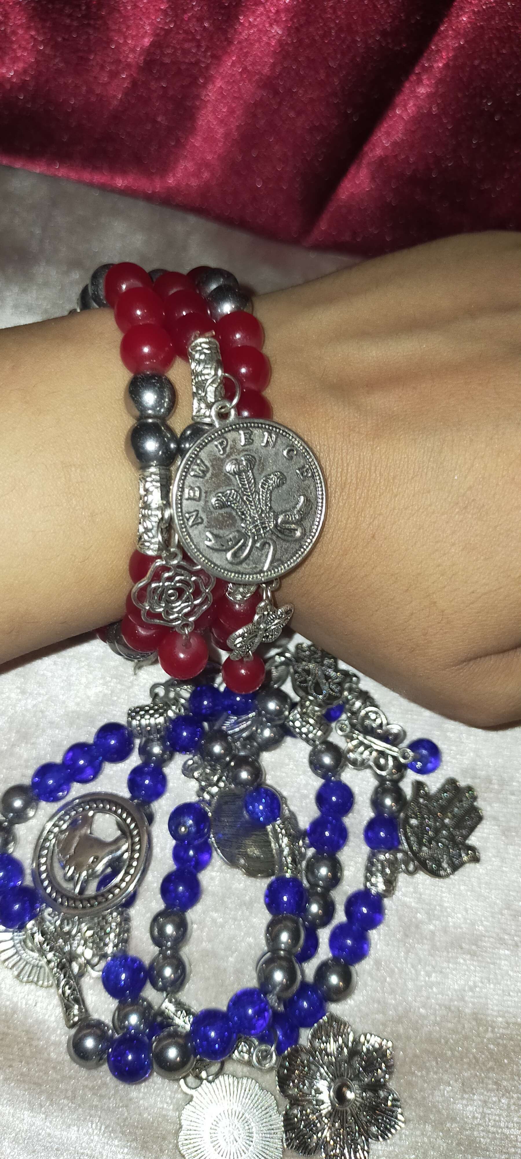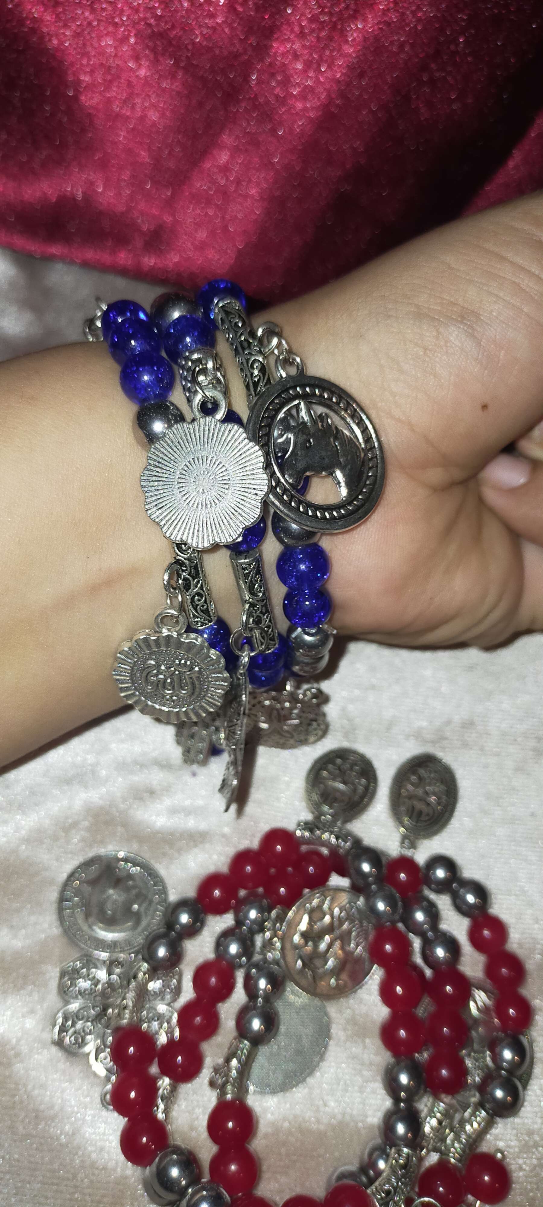 طقم مكون من ٣ اساور متوفر باللونين الأحمر والأزرق بدلايات فواصل معدن