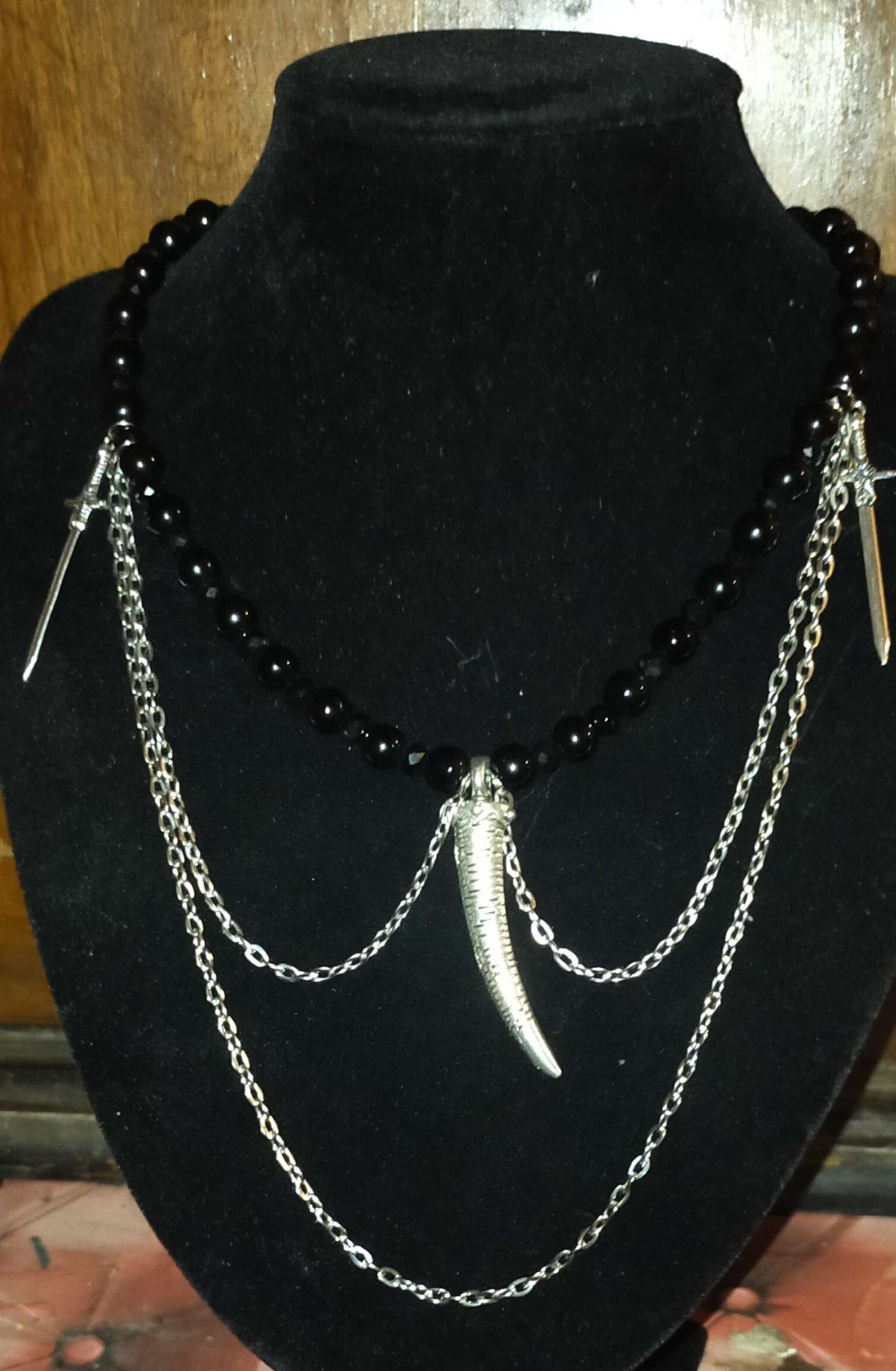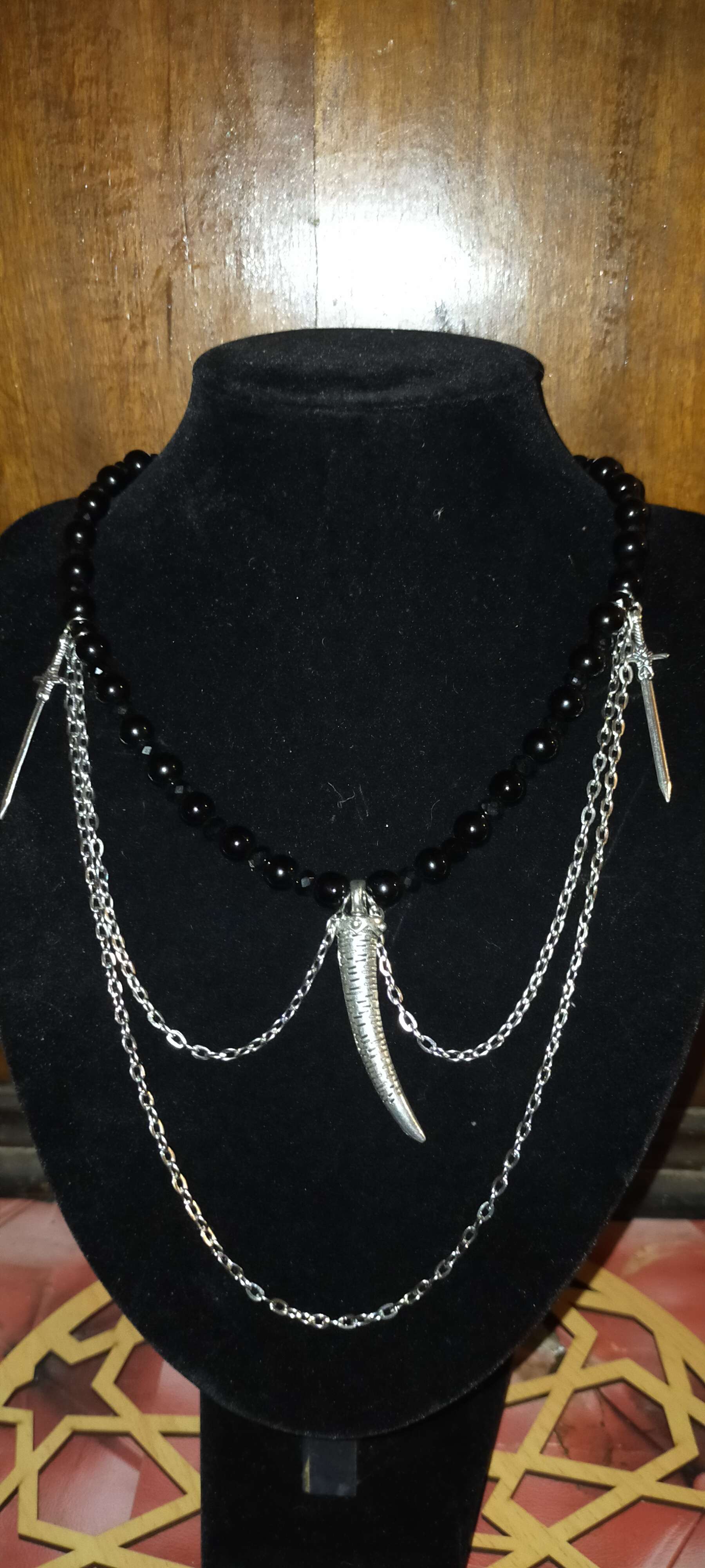 سلسلة لولي اسود وكريستال اسود بدلايات فضي