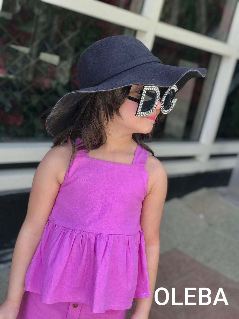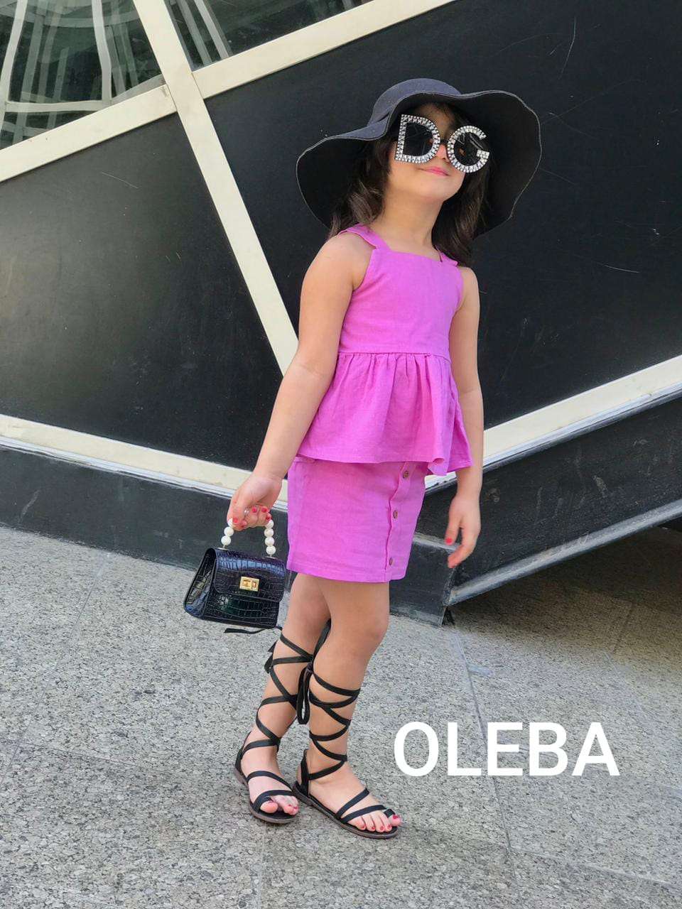 طقم اطفال خروج كتان قطعتين توب وجيب مبطن